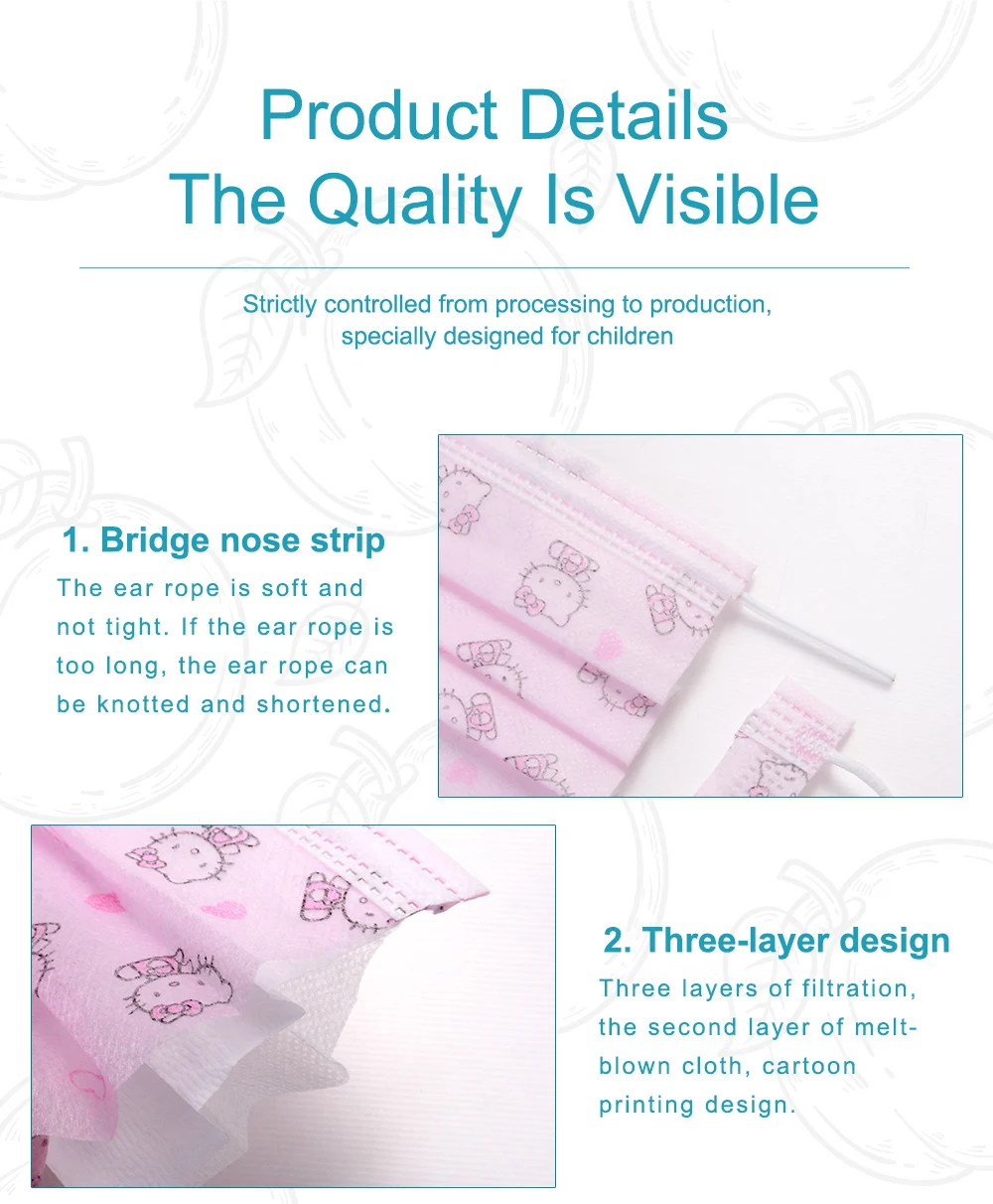 Одноразовая маска гражданского 3-х слойные мyльтяшнaя мaскa для детей дети ребенок маскаПараметры продукта:Материал: трехслойный нетканый материалПодходящий сезон: Весна, Осень, Зима, ЛетоСтиль маски: Тип ухаРазмеры: 14,5*9,5Особенности продукта:1. Новая ткань PP Нетканая ткань, мягкая и чистая, удобная и дышащая2. Процесс бесшовной вязки3. Три раза дизайн, больше дышащего пространства на лице4. Пластиковая полоска для носа, алюминиево-пластиковая полоска для носа,5. Многослойная защита для вашего дыхательного здоровьяКак носить маску:1. Закройте рот и нос и Повесьте два боковых ремня на уши2. Фиксация моста носа в соответствии с формой носа предотвращает загрязнения воздуха от входа.3. Пожалуйста, потяните маску к нижней челюсти, чтобы немедленно предоставить трехмерное дышащее пространство.Пожалуйста, обратите внимание, что указанный Товар производится и распространяется за рубежом и в соответствии с законодательством страны его происхождения