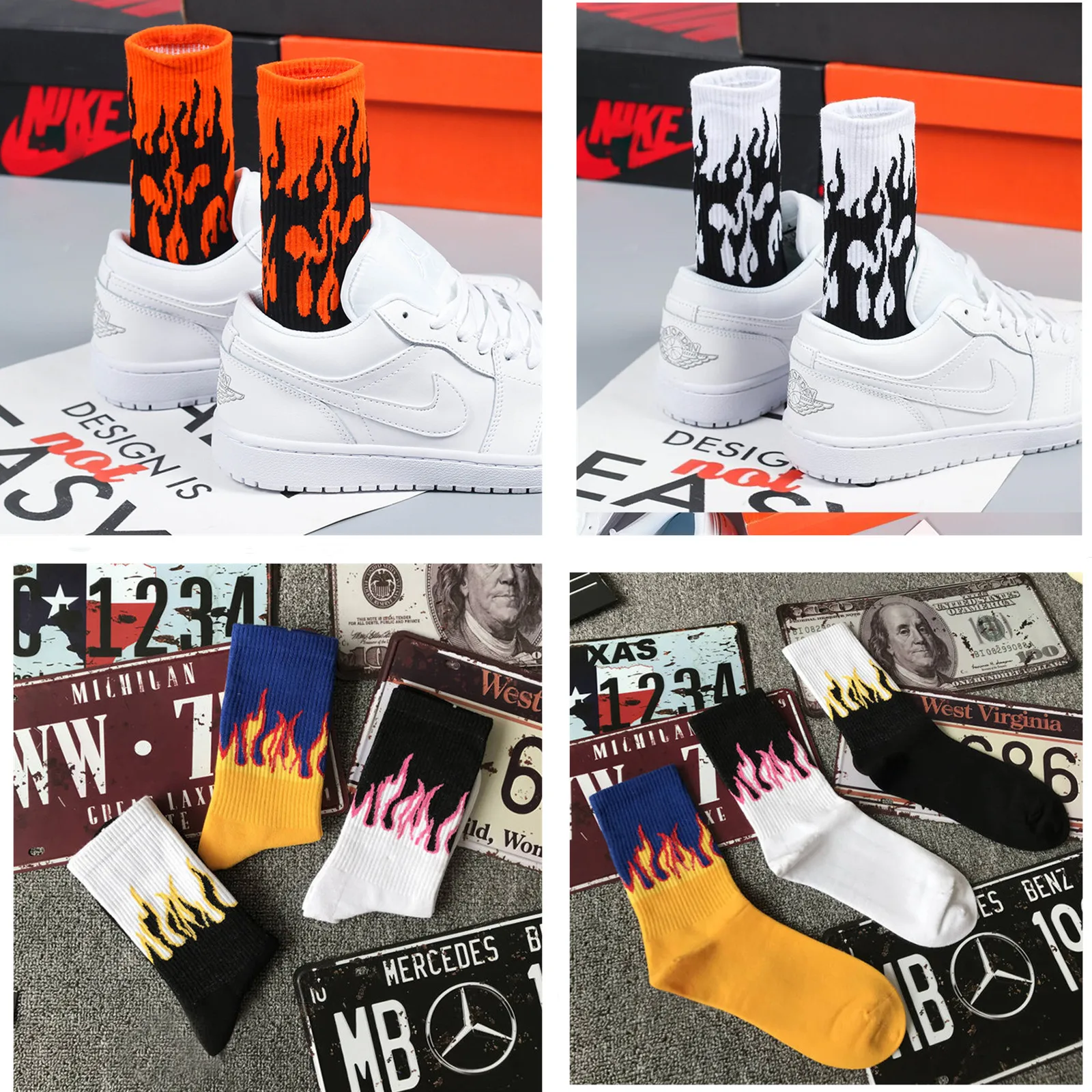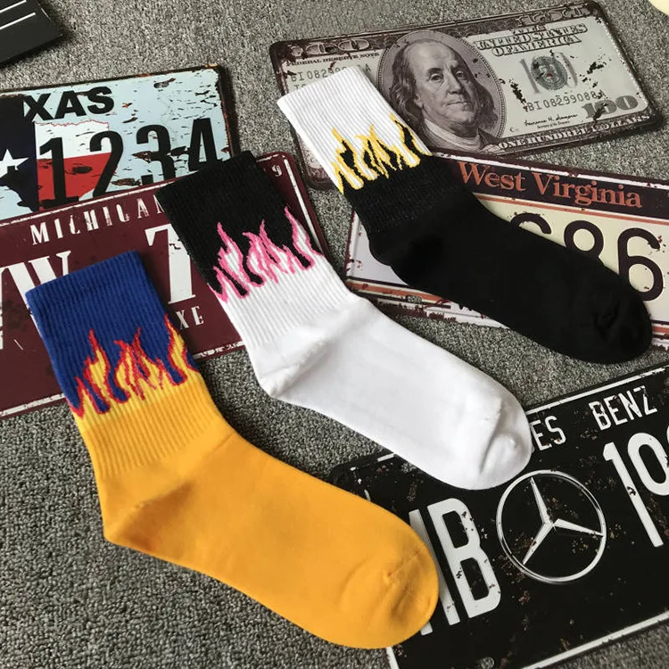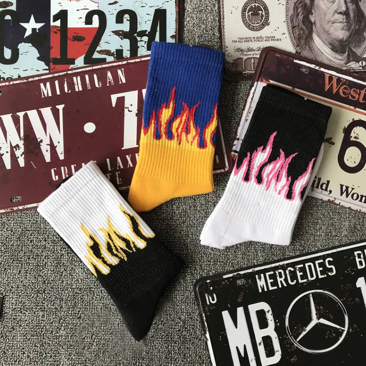 Модные мужские хип-хоп хит Цвет огне нескользящих носочков, красные...