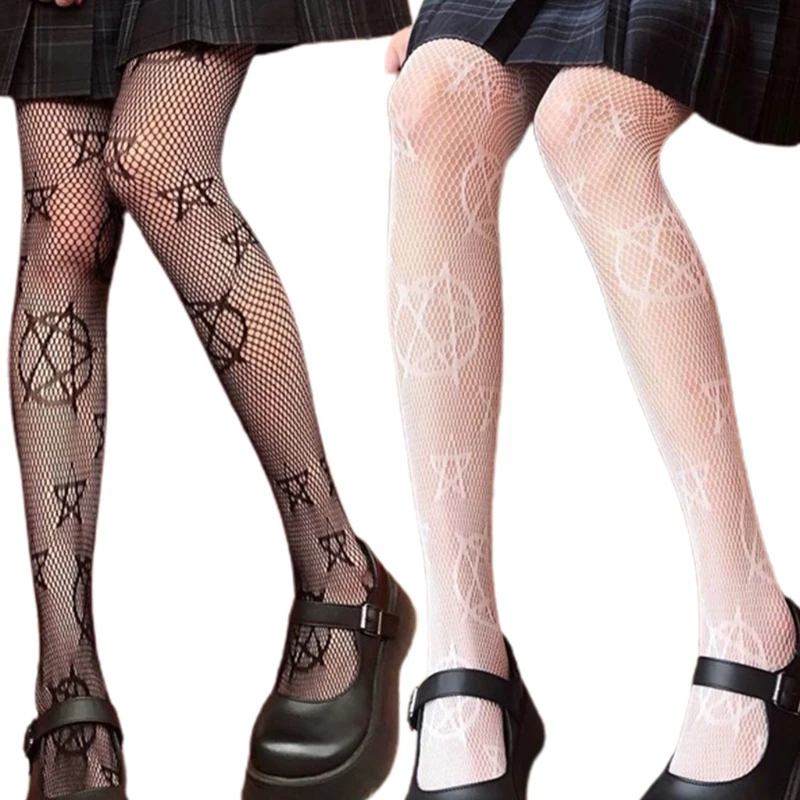 Женские готические колготки с высокой талией Harajuku Волшебная звезда колготки в сеточку