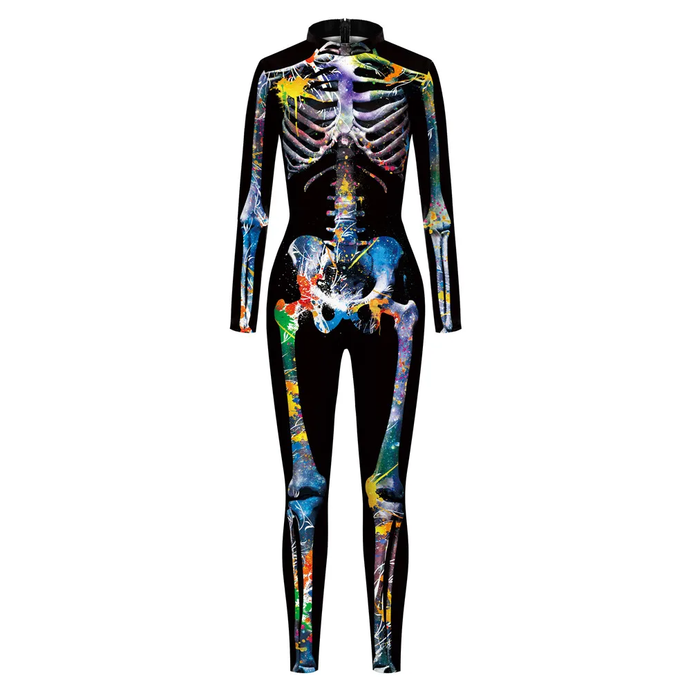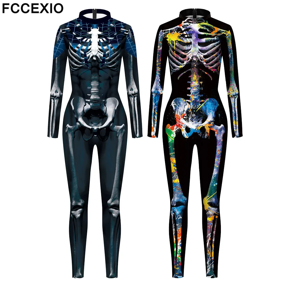 FCCEXIO Хэллоуин тело Скелет 3D печать сексуальные боди косплей костюм комбинезон взрослый комбинезон с длинным рукавом