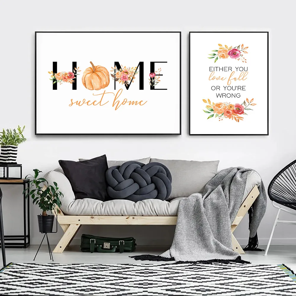 Здравствуйте, осенняя Настенная картина с цитатами, детский мультяшный художественный принт, цветочный венок, тыква, холст, картина, постер, домашний декор, без рамки