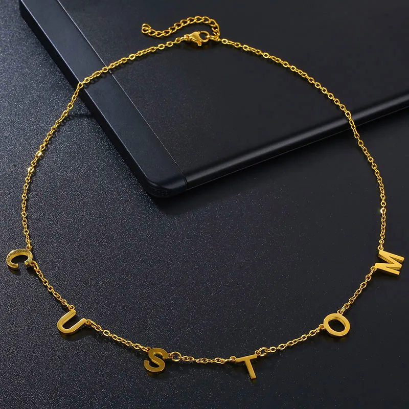 Модные золотые ожерелья из нержавеющей стали с именем для женщин, п...