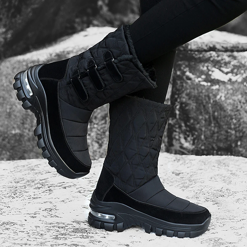 Женские зимние сапоги TUINANLE 2022, теплые плюшевые женские сапоги большого размера 42 на подошве с подушкой, зимние сапоги до середины икры на плоской подошве, Нескользящие сапоги