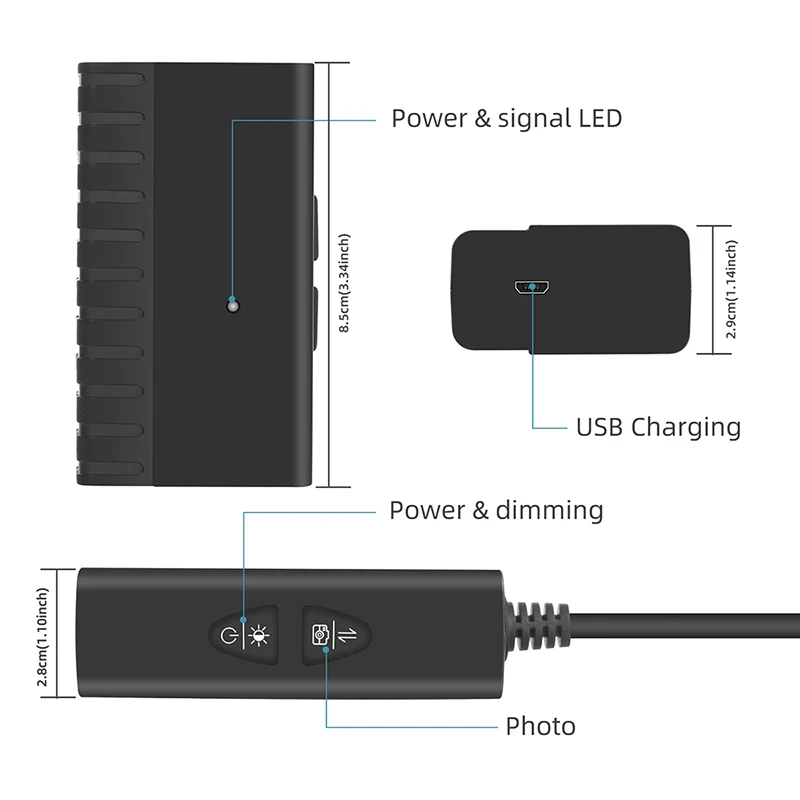 Кабель Длина: 1 м/3 м/5 м/10 м жесткий кабель Камера Диаметр: 5,5 мм Разрешение: 1920*1080, 1280*720, 640*480 Батарея Ёмкость: 2600 мАч Время работы: 4-5 часов класс водонепроницаемости: IP67 Система поддержки: Android Type-C смартфон/Android micro USB смартфон дальность наблюдения: 3-10 см