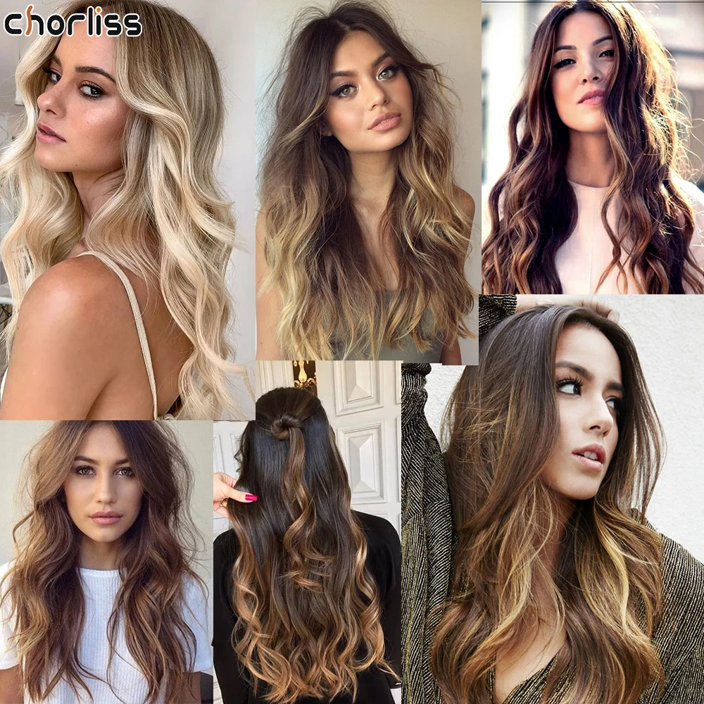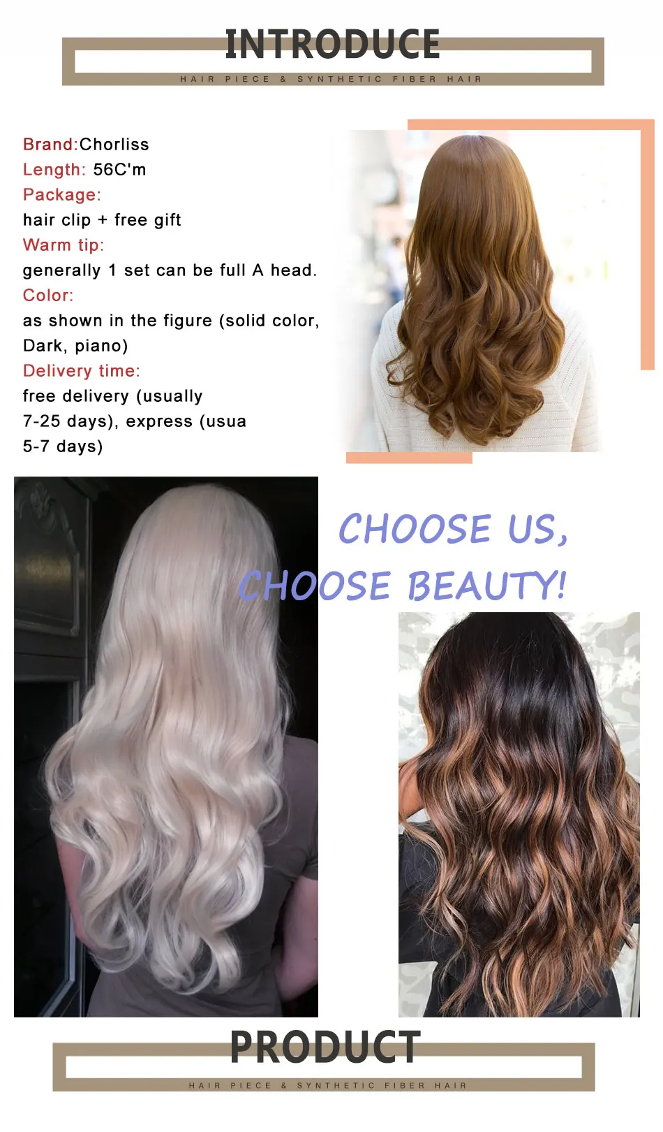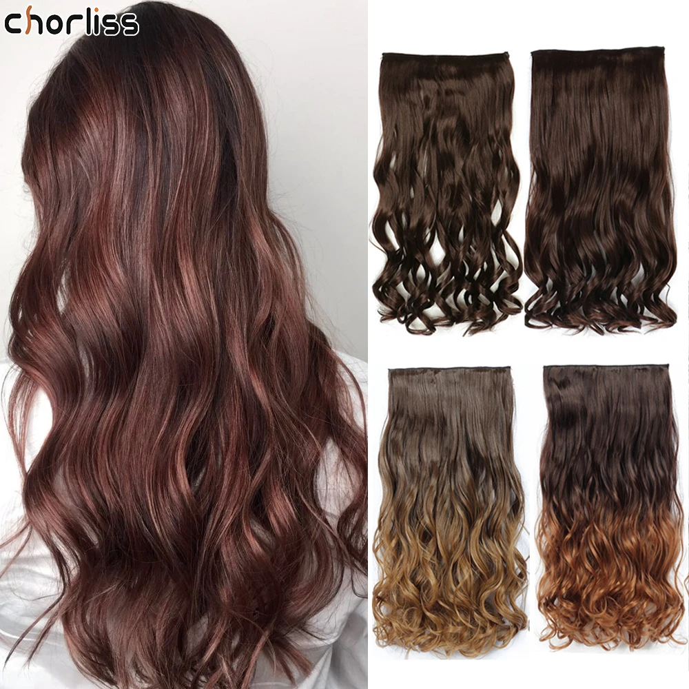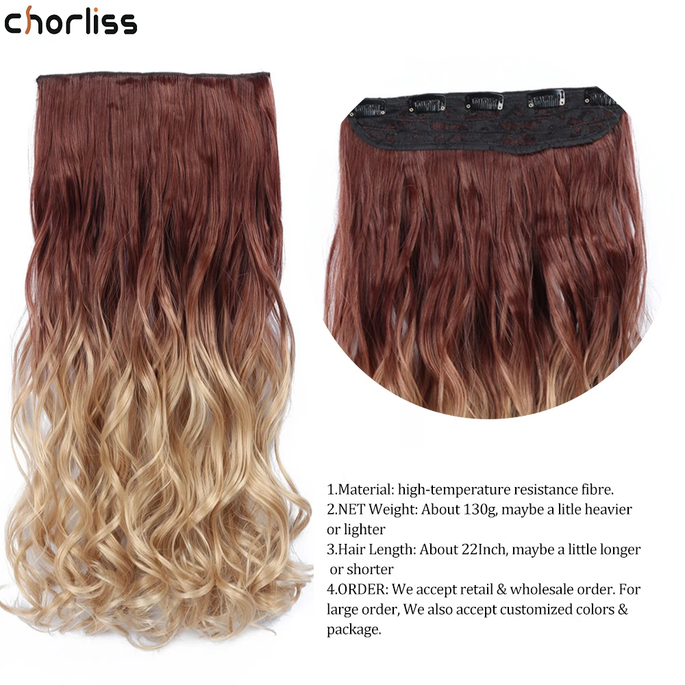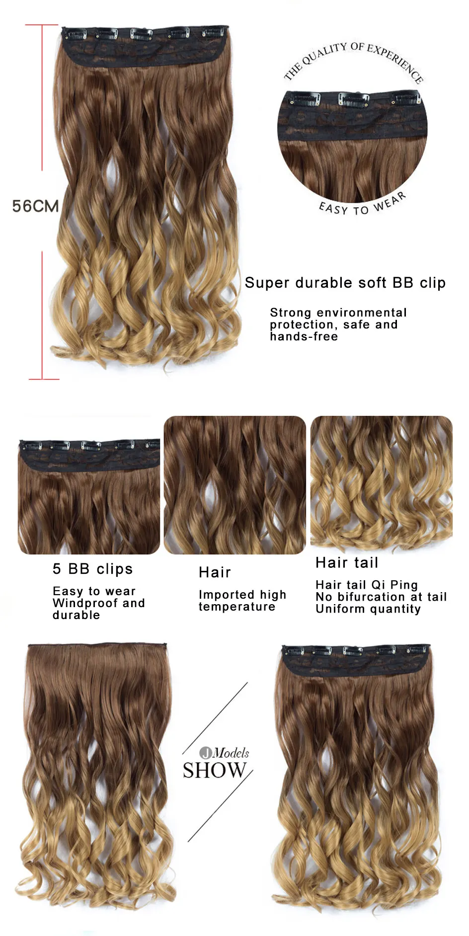 Длинные волнистые синтетические накладные волосы на клипсе, 22 дюйма