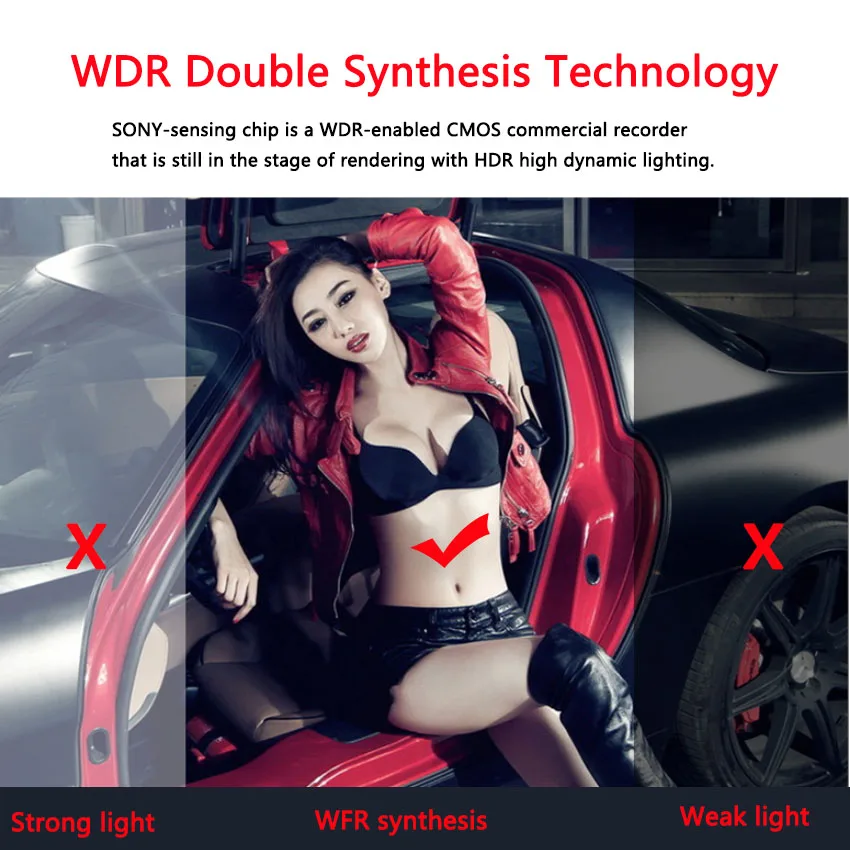 Технология WDR может регулировать баланс экспозиции, позволяя камере получать более подробную информацию в темноте и высокий светильник s, позволяя dash cam обрабатывать более светильник на датчике и производить более яркое изображение.Технология HDR поможет вам запечатлеть более четкие и стабильные изображения в динамическом процессе.