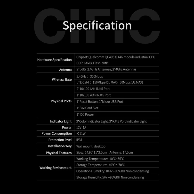 Wi-Fi-роутер COMFAST E3 4G LTE, 2,4 ГГц, 4 антенны