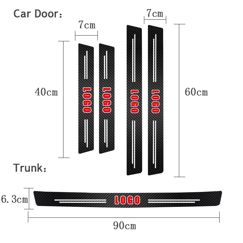 4 шт., наклейки на пороги автомобиля, из углеродного волокна