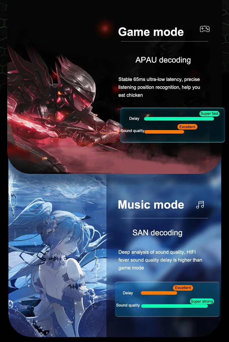 Игровая беспроводная гарнитура BLE5.0, два режима без задержек, 4 ч...