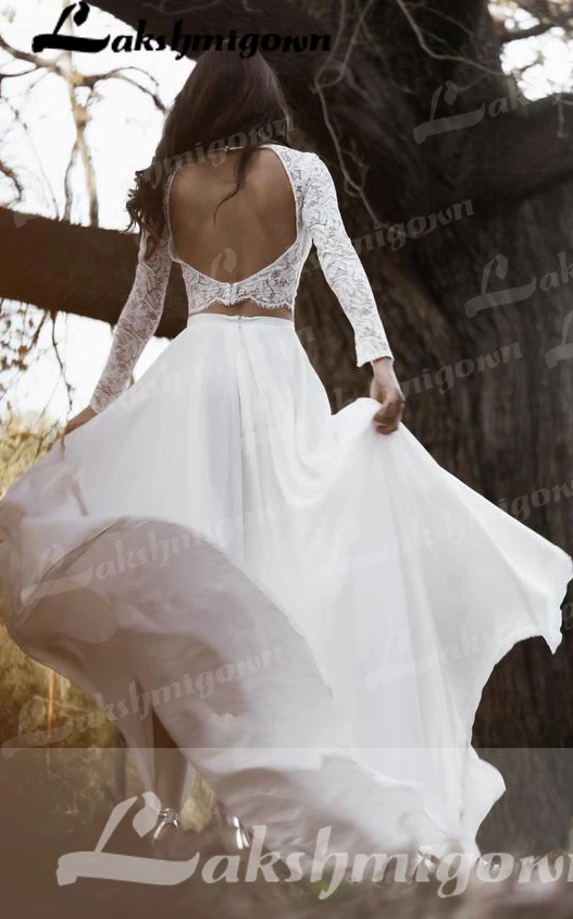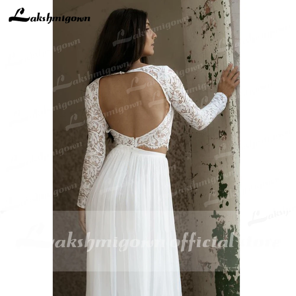 Шифоновое свадебное платье с разрезом спереди, с длинным рукавом
