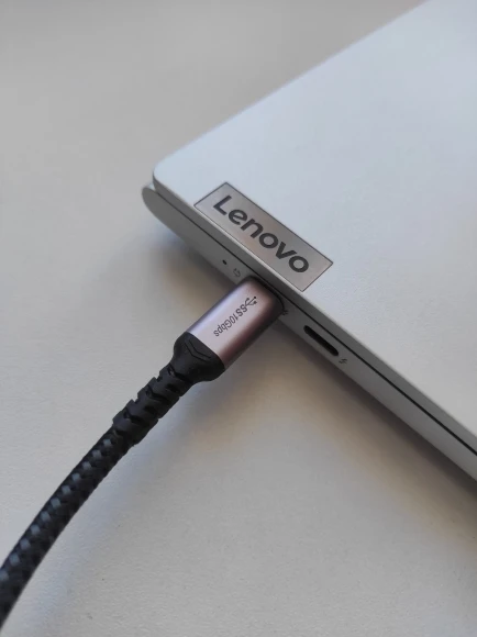 Нормальный кабель, подключил док-станцию по нему. Оплётка выглядит прочной, жёсткость как у штатного. Почему-то при первом подключении одного из двух приобретенных кабелей не пошла картинка на монитор, хотя монитор определился, перетыкал несколько раз, потом картинка пошла.