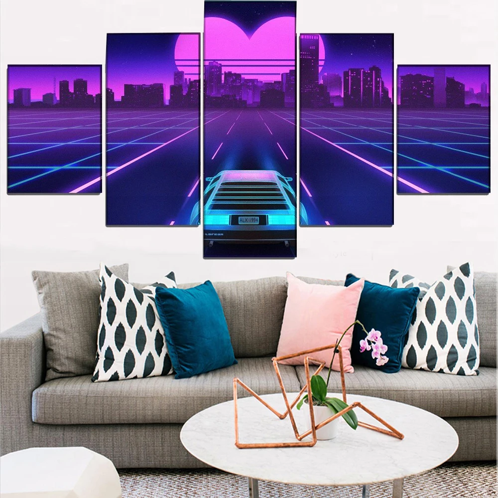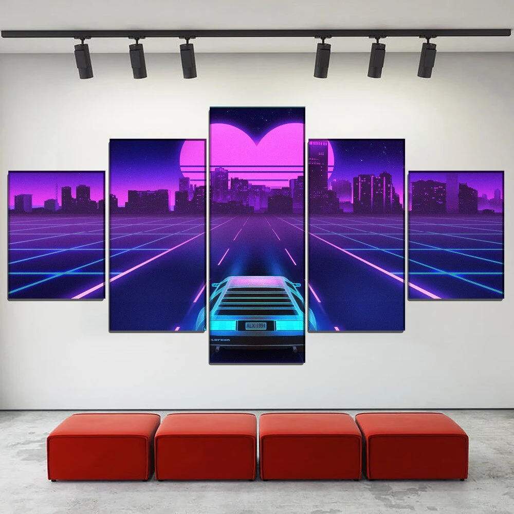 5 шт. настенная Картина на холсте в форме сердца автомобиль абстрактный плакат модульный домашний декор для гостиной рамки картины