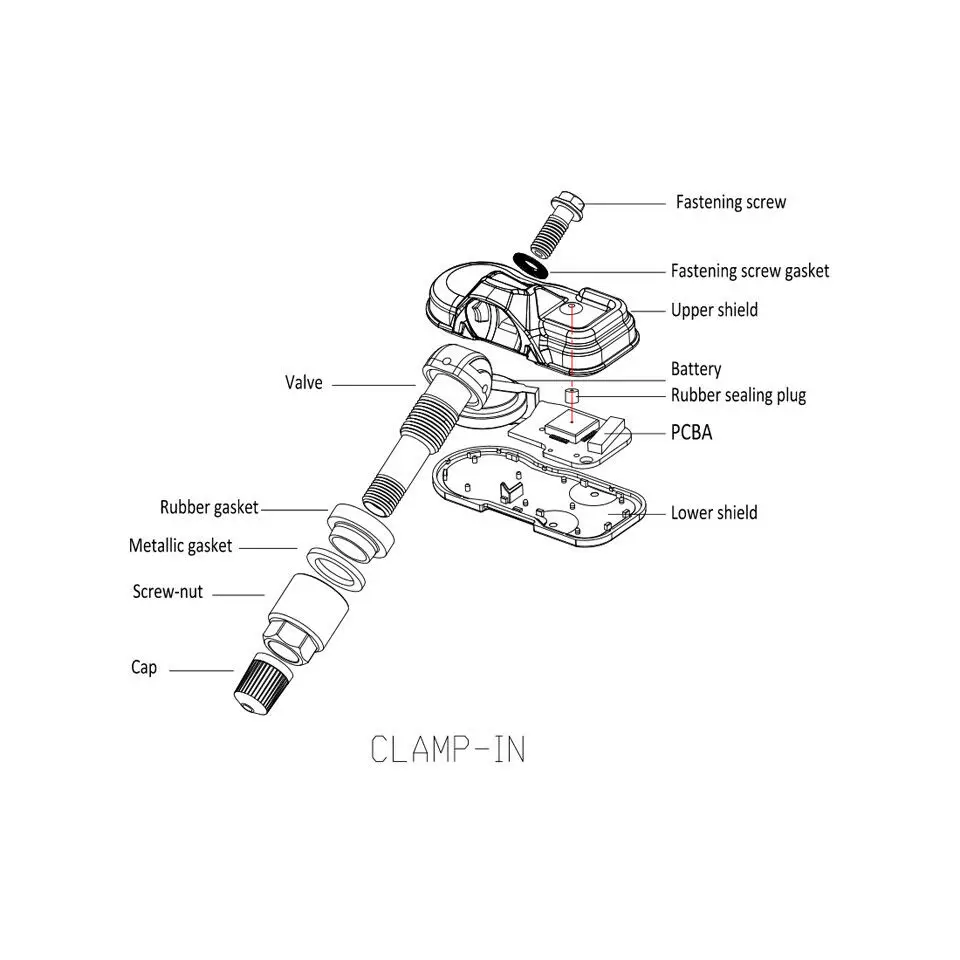 · Срок службы батареи: ≥ 5 лет· Рабочая температура: -40 °C - 125 °C· Температура хранения: -40 °C t - 125 °C· Рабочая влажность: ≤ 90%· Рабочая частота: 315 МГц ~ 433 МГц· Макс. Диапазон давления: 800 кПа· Диапазон измерения температуры: -40 °C - 125 °C· Точность считывания температуры: ± 5 °C· Точность считывания датчика G: ± 15%· Мощность передачи: 5-8 дБм· Батарея: 3,0 V· Размеры: прибл. 42,4*24,1*16,0 мм· Вес датчика без клапана: 13 г