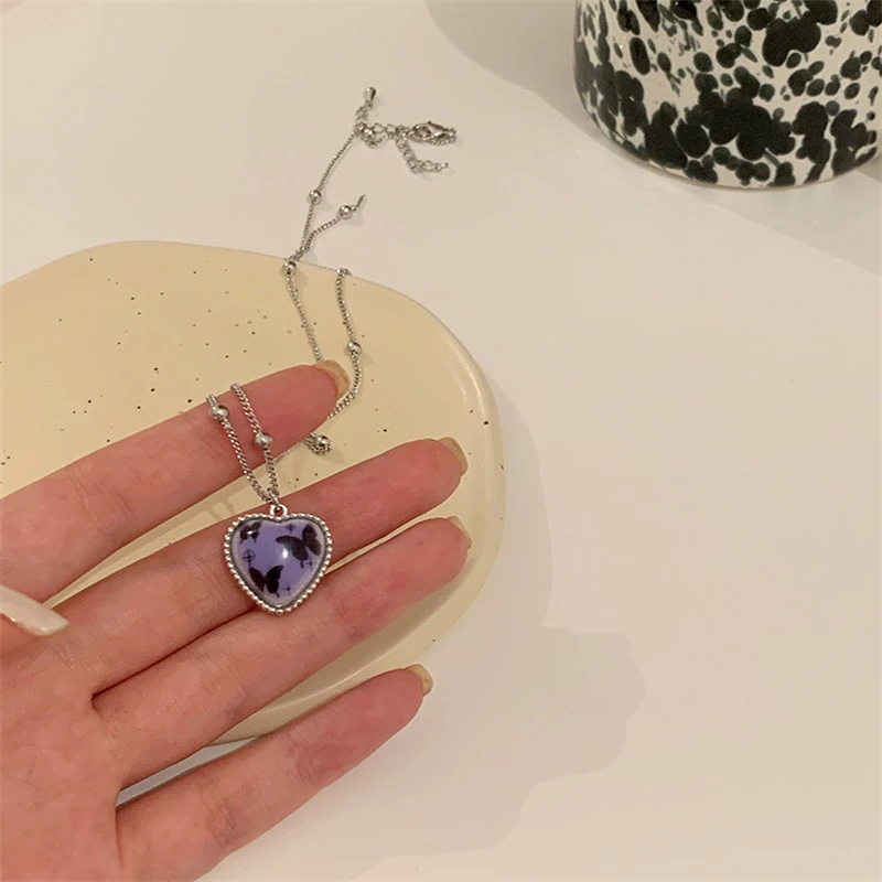 Женское Ожерелье-чокер, цепочка серебристого цвета с кулоном в виде сердца, бабочки, 2021