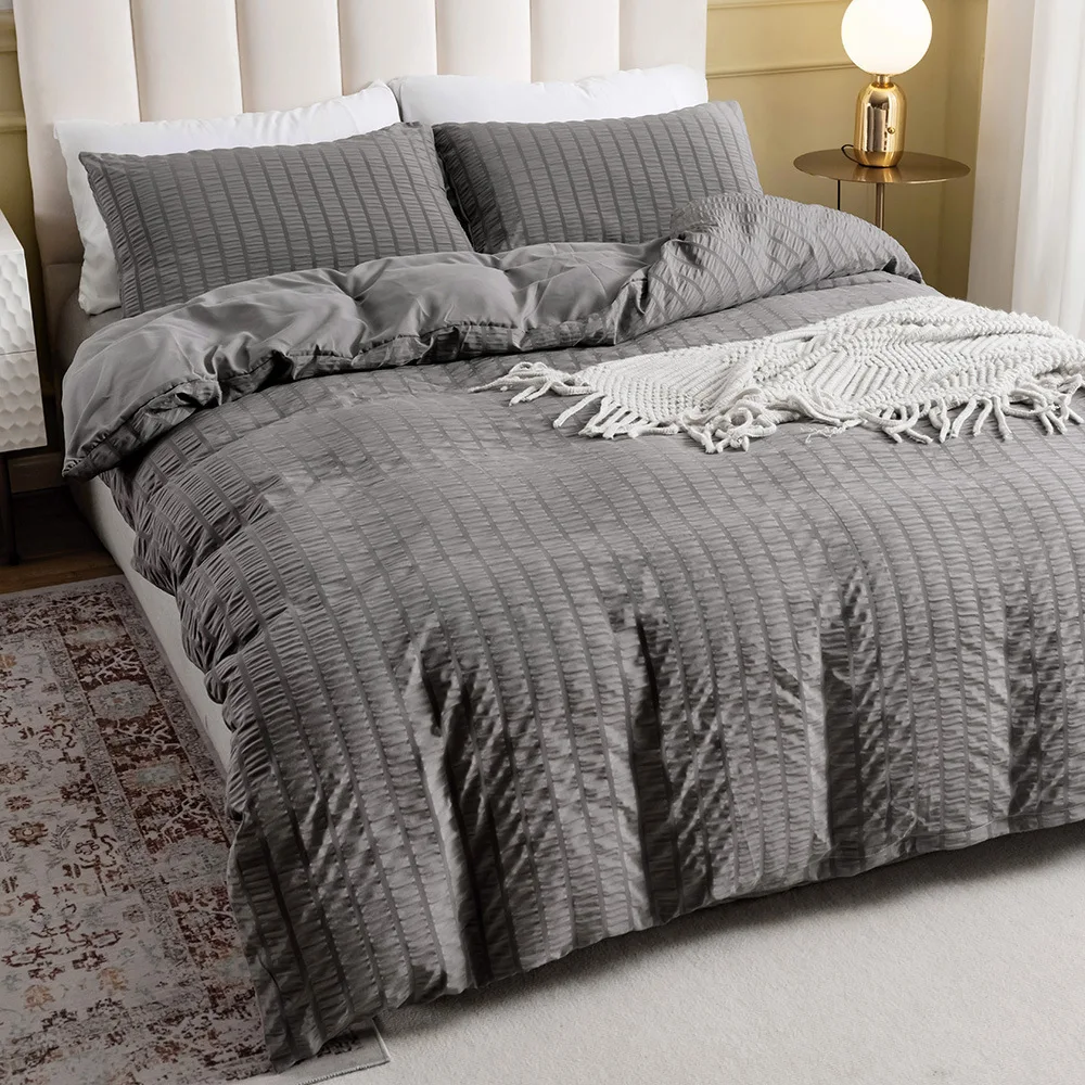 Комплект постельного белья в полоску, белый и серый комплект с подо...