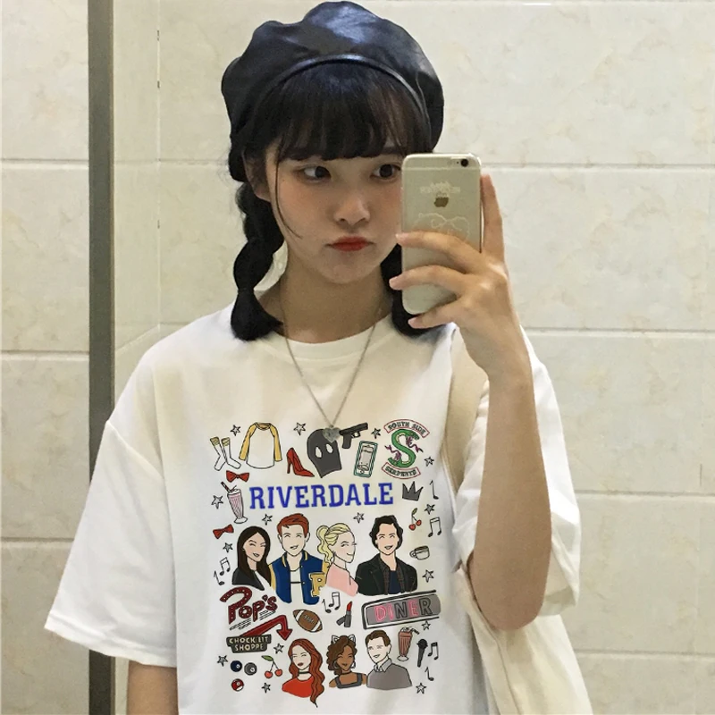 Летняя новинка, свободная футболка с коротким рукавом, ривердэйл, с надписью ins, в стиле Харадзюку, Женская Винтажная Футболка с принтом в стиле панк, повседневная женская футболка