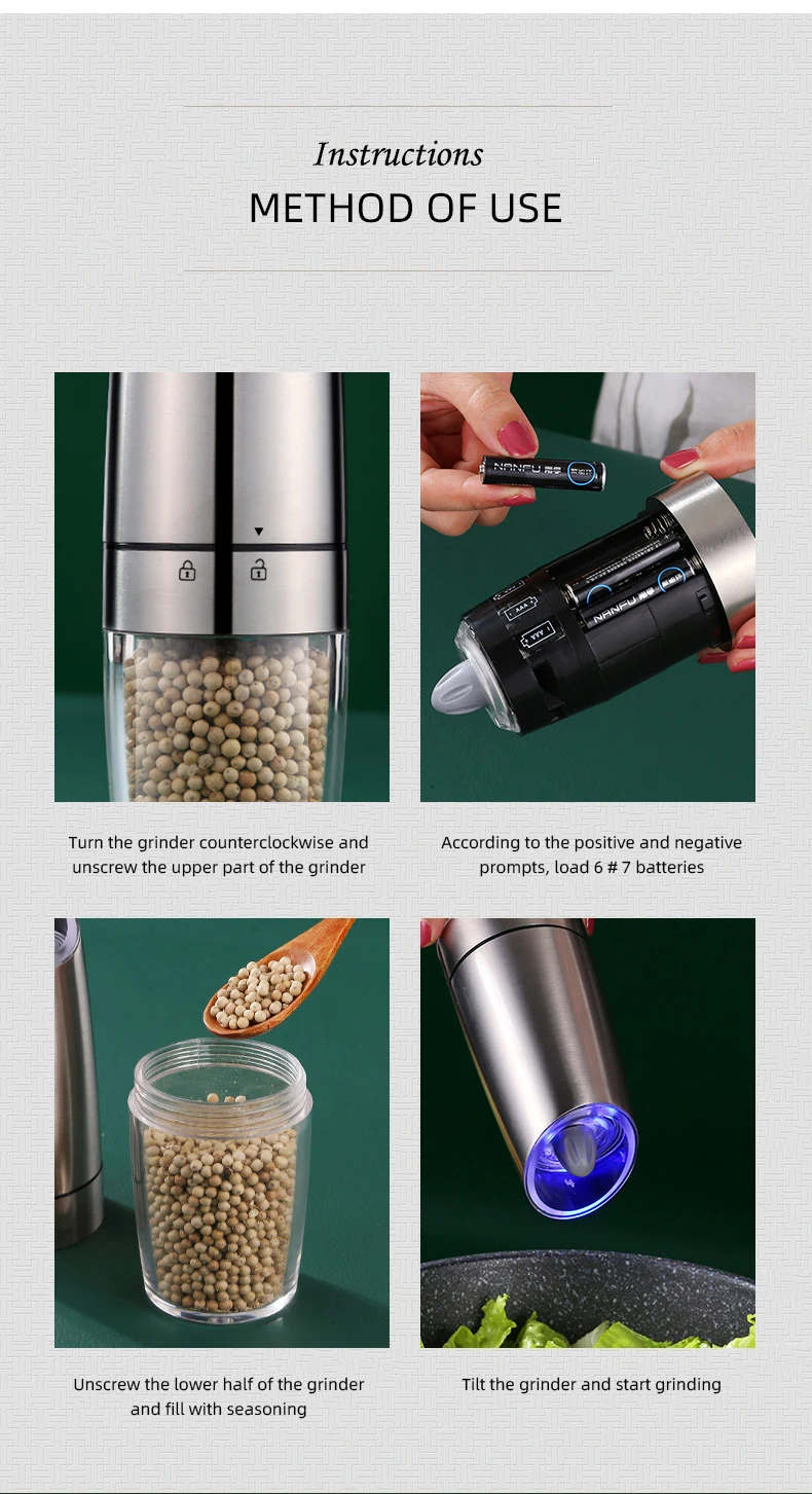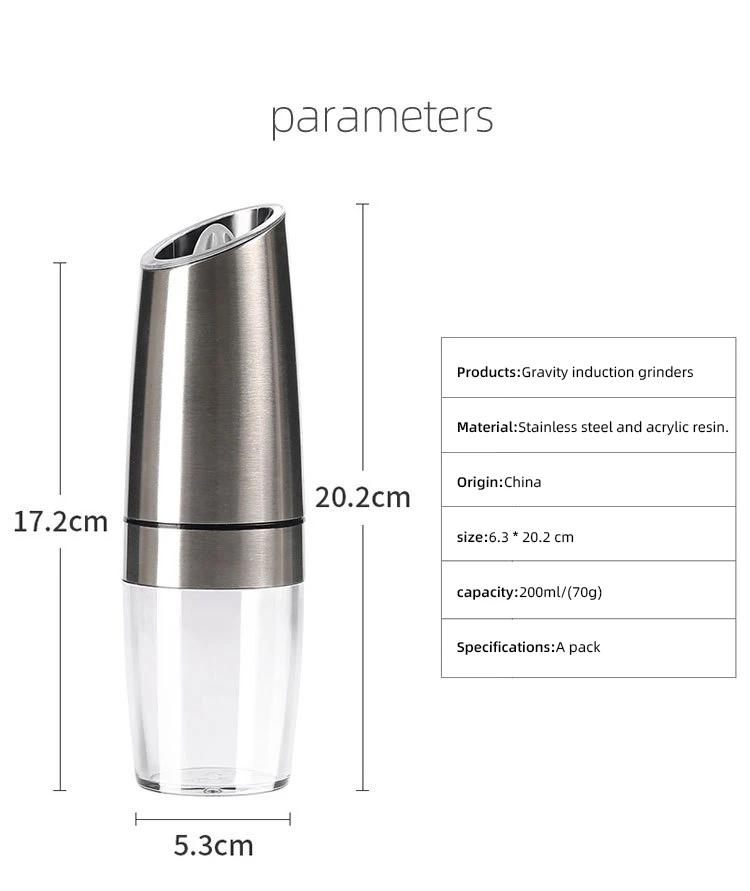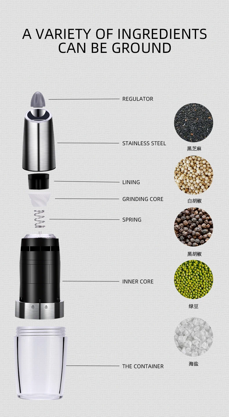 Автоматическая гравитационная электрическая мельница для соли и перца, регулируемая мельница для специй светодиодный светильник кой, Кухонное устройство, кухонная посуда
