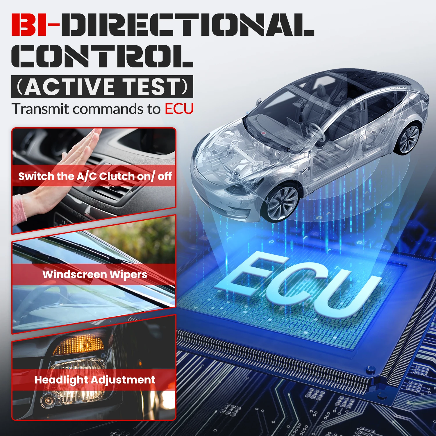 Процесс отправки и извлечения информации из модуля управления транспортным средством с устройством известен как двунаправленный контроль. Этот высококлассный профессиональный автомобильный диагностический инструмент имеет двунаправленный потенциал, что означает, что MP808BT может выполнять функциональные тесты, проверки, системные тесты и тесты привода (активные тесты) и т. Д., он может общаться, а также слушать диагностические процедуры автомобиля.Когда вы находитесь в темноте и не знаете, есть ли проблема с компонентом, схемой или компьютерной системой транспортного средства, вы можете использовать двунаправленный инструмент, чтобы запросить модуль управления для выполнения конкретной функции для устранения проблем.Предположим, что вы подключены к манометру топлива, свернули ключ и свернули двигатель. Тем не менее, вы не можете понять, что касается давления топлива. В этот чехол вы можете отправить команду топливного насоса в инструкции, и вы сможете увидеть правильное давление топлива. Следовательно, вы будете знать, есть ли проблема с схемой топливного насоса или насоса.Примечание:1. Активный тест не доступен для всех транспортных средств. Пожалуйста, проверьте совместимость с номером VIN через QA или свяжитесь с нами.
