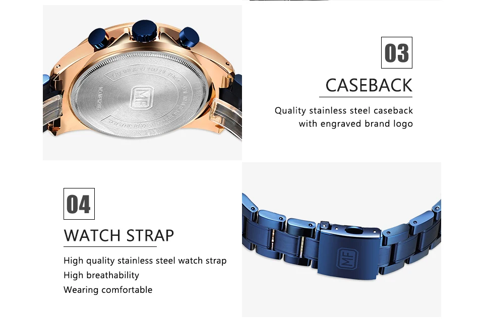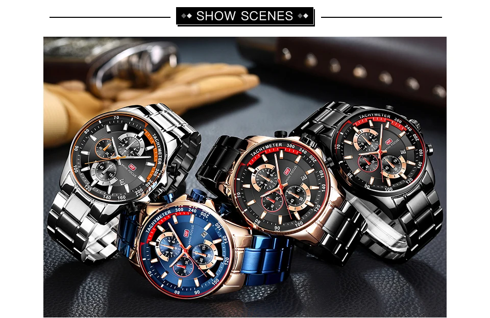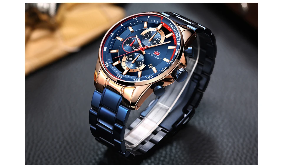 Часы мужские с браслетом из нержавеющей стали, синие, спортивные, кварцевые, с календарем, 2021