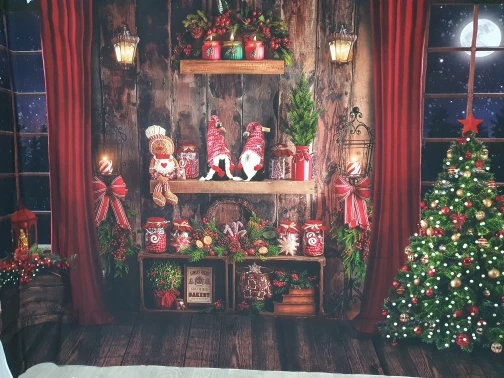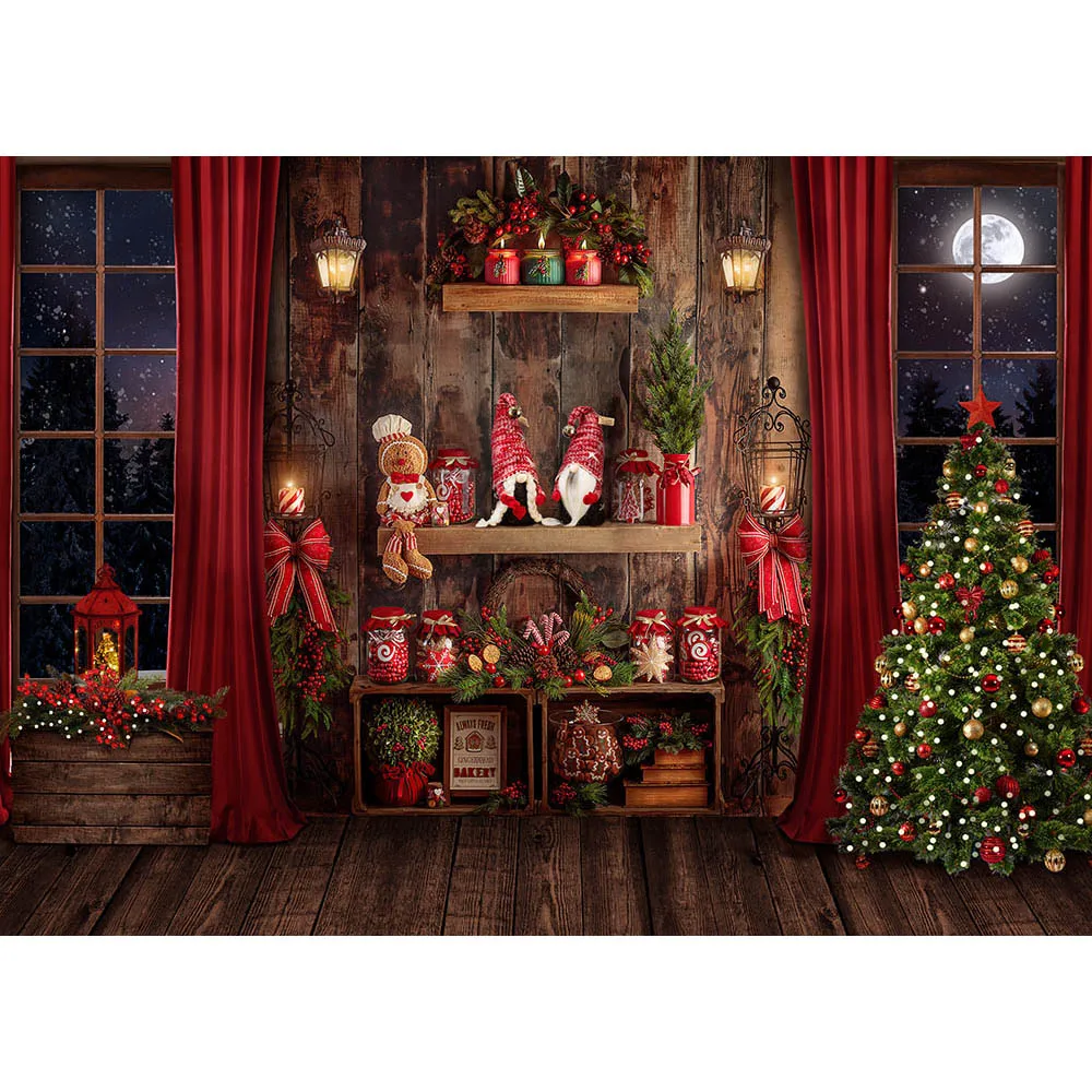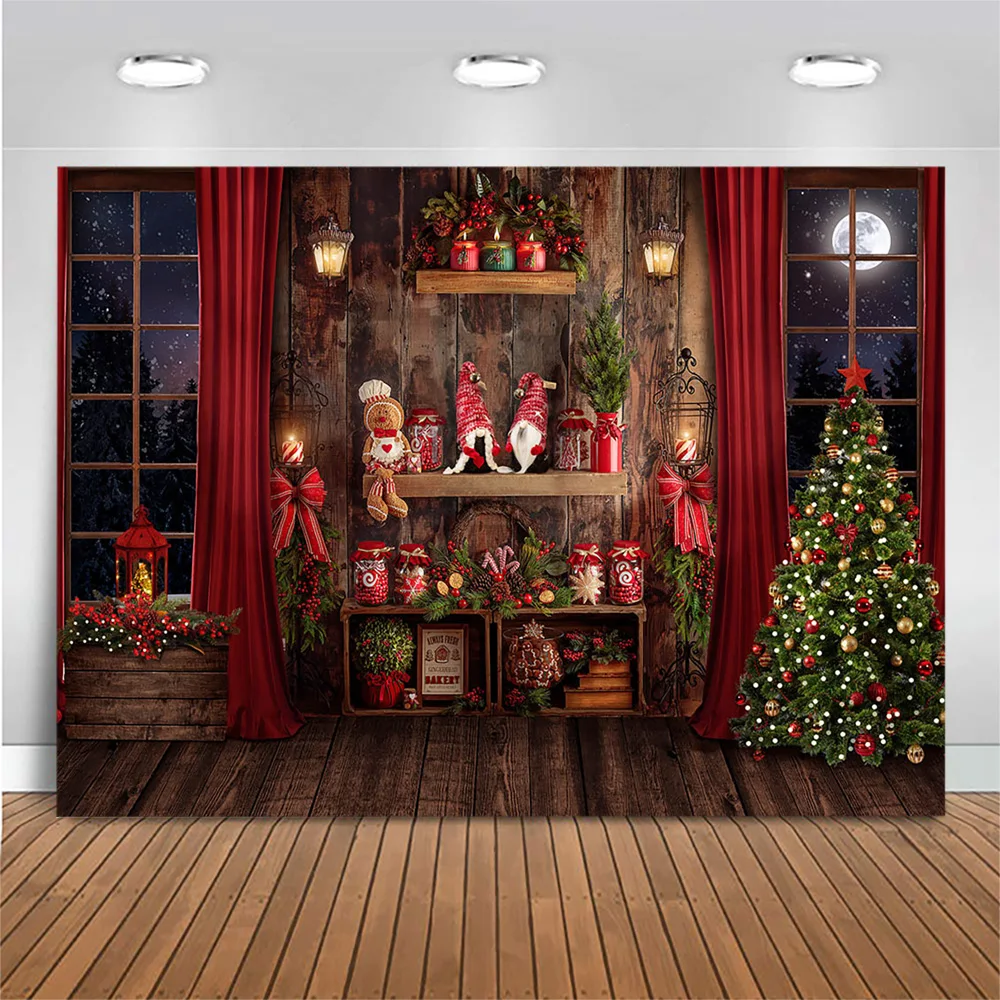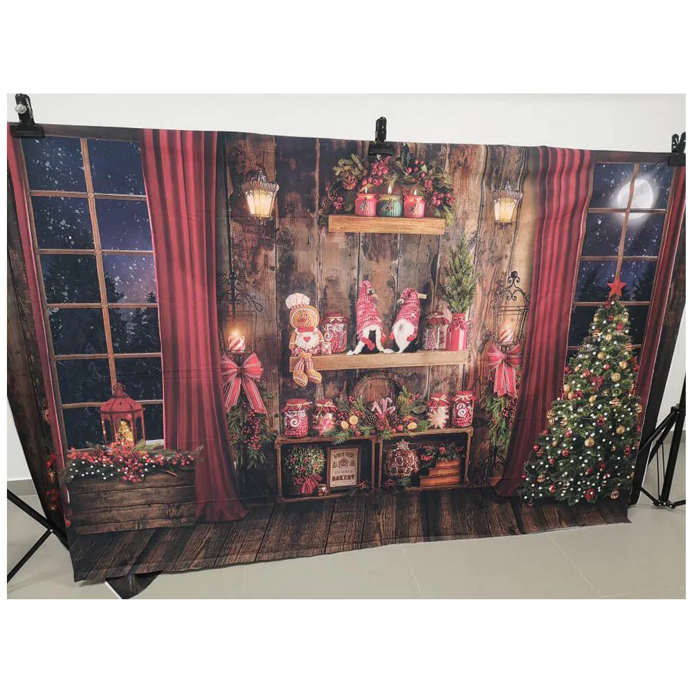 Mocsicka Рождественский фон для фотостудии с изображением деревянной стены и пола Рождественская елка куклы окно луна Детская фотография