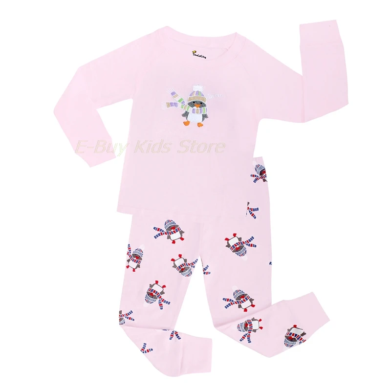 Пижамные костюмы с мультяшным пингвином для маленьких девочек, детские розовые комплекты одежды, пижама с длинным рукавом, Повседневная Пижама, детские пижамы, пижамы