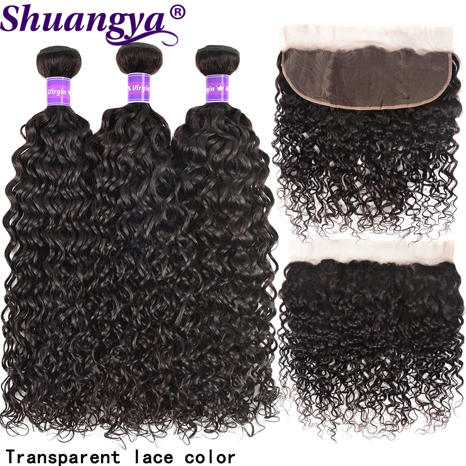 Бразильские волнистые пряди с фронтальной прозрачной кружевной фронтальной пряди 100% Remy человеческие волосы для наращивания Shuangya