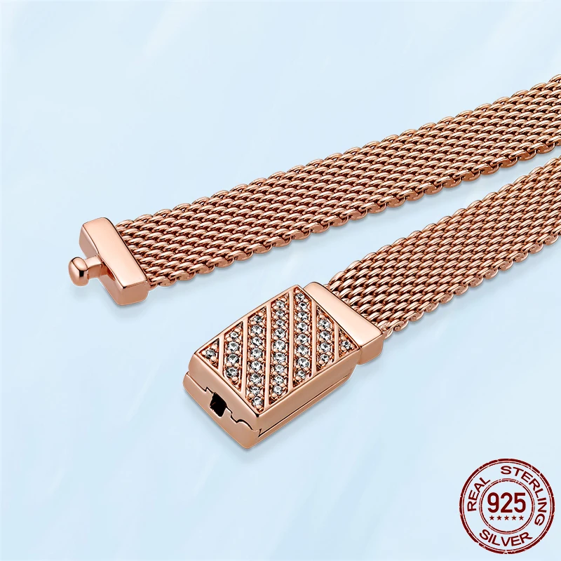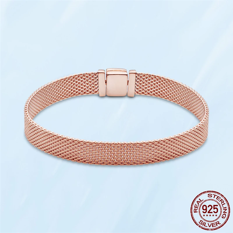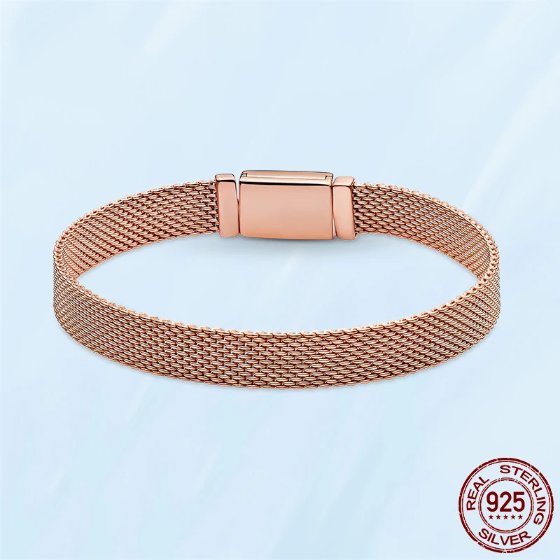 Женский браслет из серебра 925 пробы цвета розового золота с длинно...