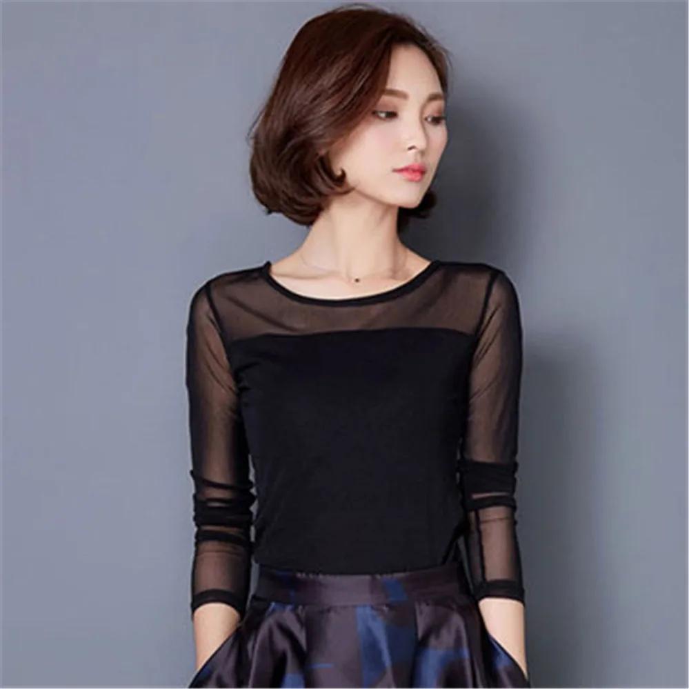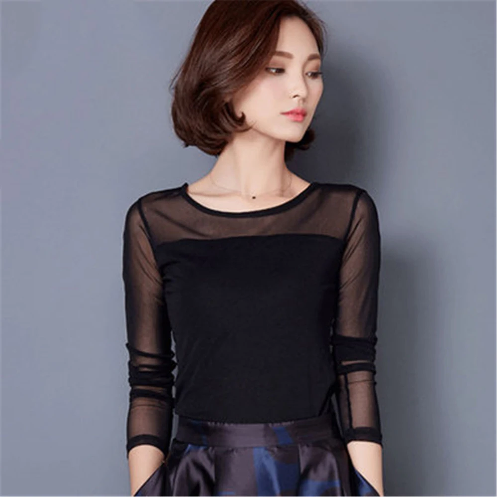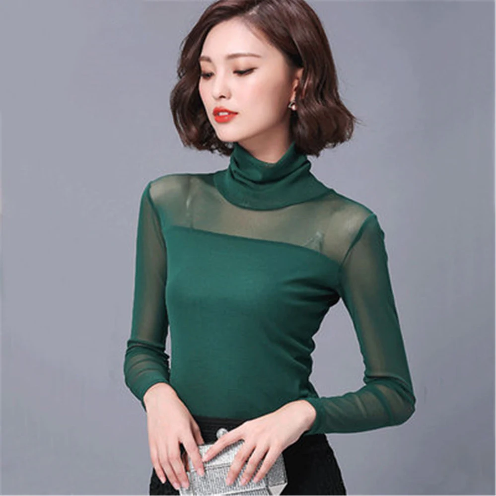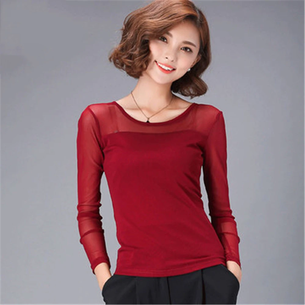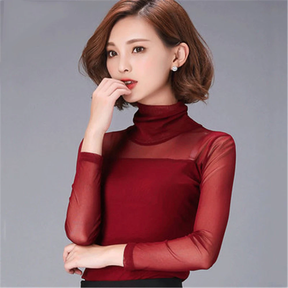 Блузка Женская осенне-зимняя кружевная, с длинным рукавом