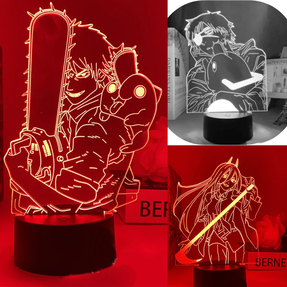 Аниме лампа для бензопилы Мужская светодиодная носветильник ПА Косплей акриловая Denji Makima Power почтовая фигурка стенд модель 3d декоративная лампа опора