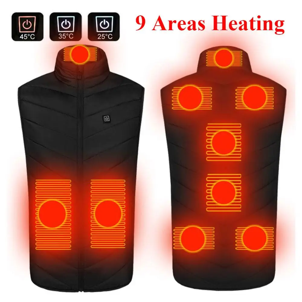 Жилет с подогревом 9 мест для женщин и мужчин, куртка с подогревом через Usb, жилет с подогревом, Термоодежда, Охотничий Жилет, зимняя куртка с подогревом