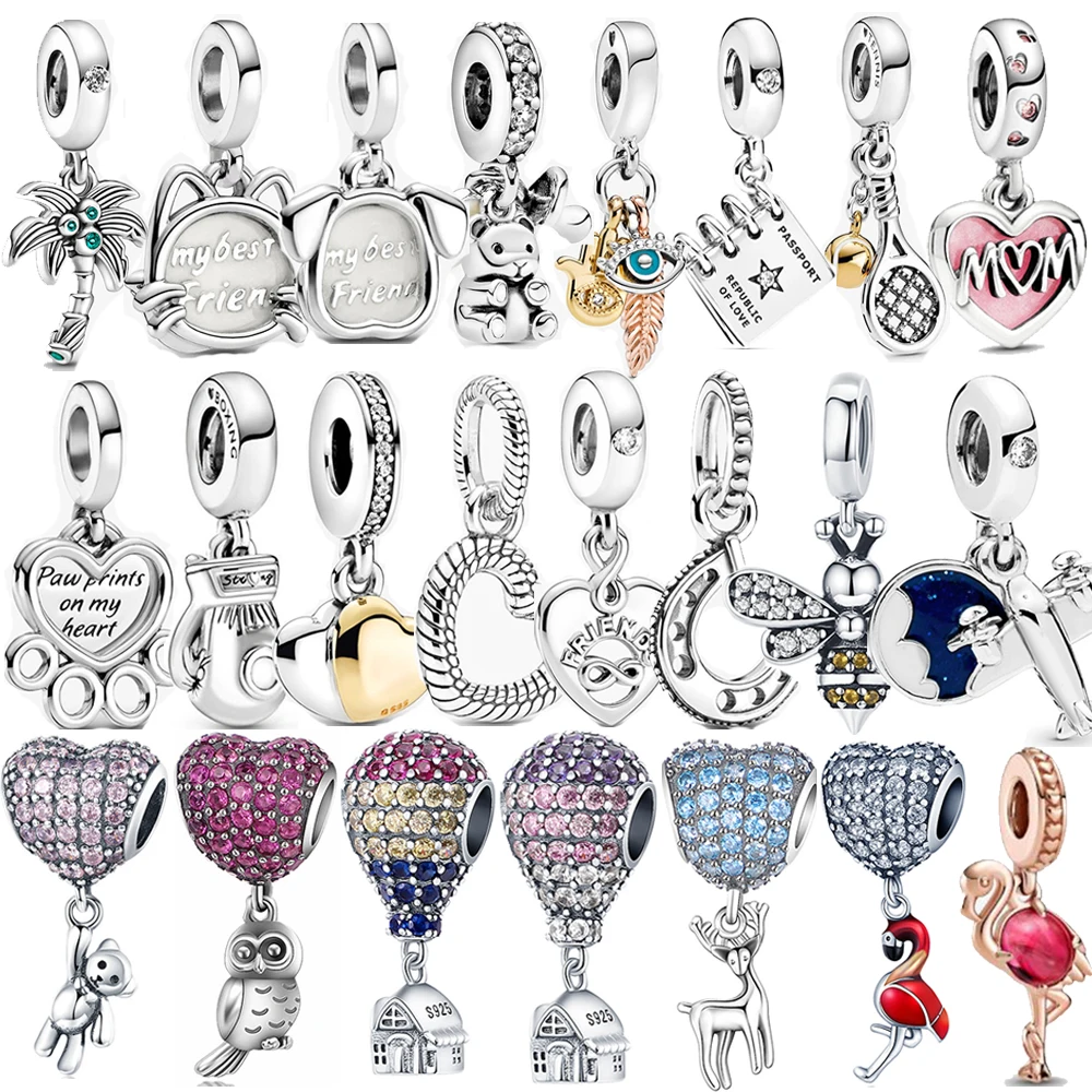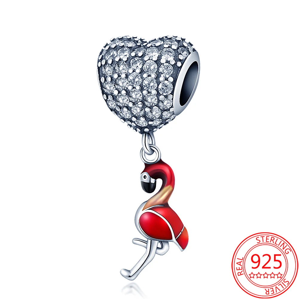 Лидер продаж, шармы-подвески из серебра 925 пробы в виде фламинго с воздушным шаром, подходят для бокса, оригинальный браслет Pandora, серебряные украшения для женщин