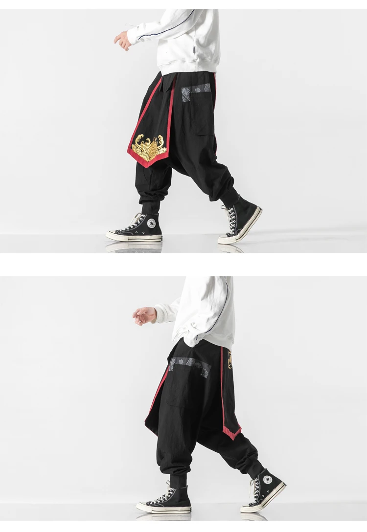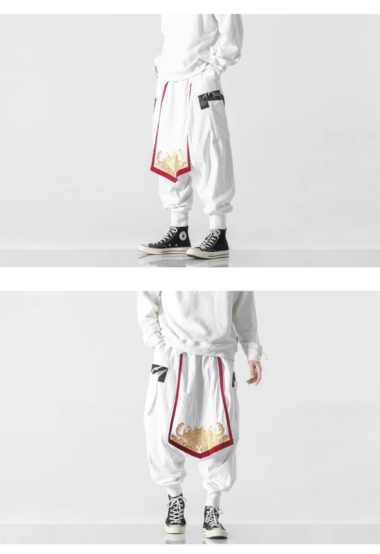 Брюки MrGB мужские из хлопка и льна, Модные шаровары в китайском стиле, повседневные штаны оверсайз с широкими штанинами, свободные винтажные штаны для бега