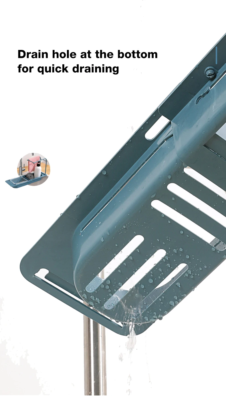 Легко хранить:Телескопическая Подставка для раковины спроектирована с длинным дном, который легко хранить в чистящих принадлежностей, таких как жидкость для мытья посуды, губка, дезинфицирующее средство для рук, чистящая щетка и т. д. Его можно удобно управлять на соответствующей высоте и удобно для ежедневной уборки