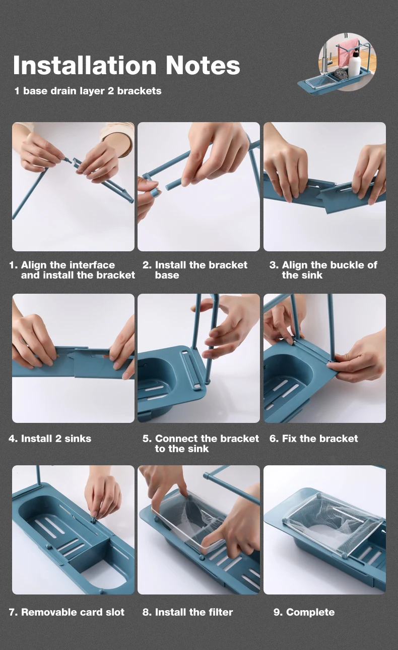 Простота установки:Эта губка для рамы для раковины разработана без перфорации, без сверления, без повреждения раковины, подходит для различных размеров раковин. Гуманизированный дизайн, легко разбирается и чистится, изготовлен из ПП материала, прочный и прочный, без тряски.