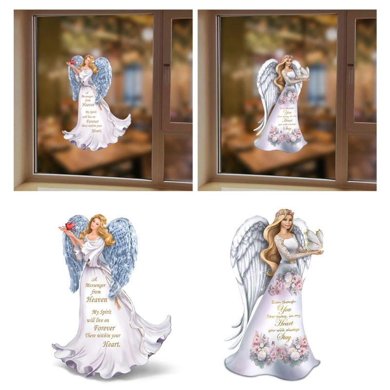 Рождественские наклейки на окно и стекло с изображением сказочного ангела, ПВХ наклейки на стену на День святого Валентина, наклейки на свадьбу, праздник вечерние, домашнее украшение