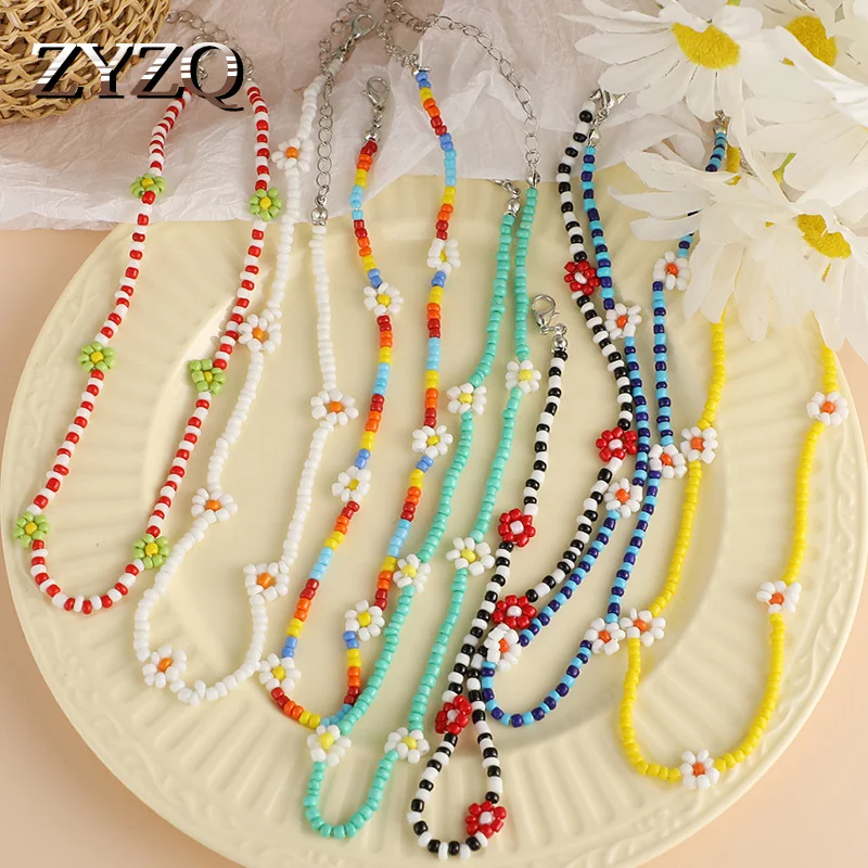 ZYZQ этническое женское ожерелье с искусственным цветком, богемное ожерелье-чокер с цветными маргаритками, цепочка, ювелирные изделия для девочек, оптовая продажа