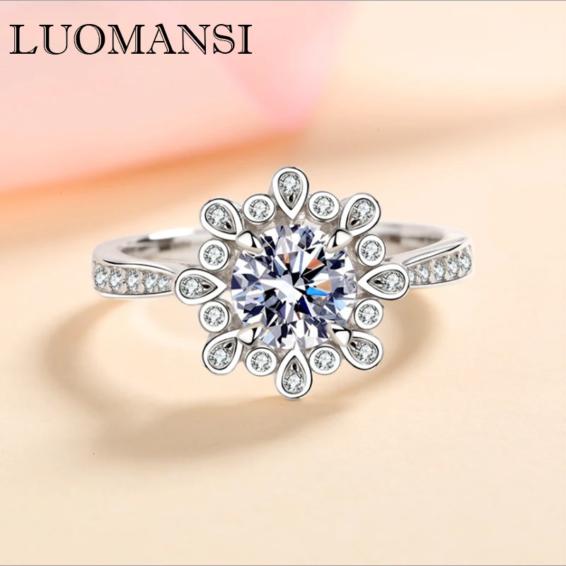 1CT 6,5 мм Moissanite Lotus Ring GRA сертификат S925 стерлингового серебра женские ювелирные изделия подарок на день рождения