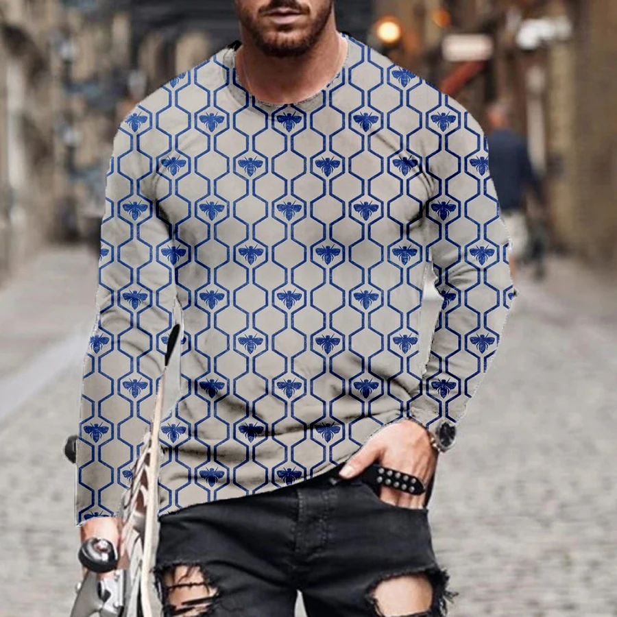 Мужская футболка с длинным рукавом, круглым вырезом и 3D-принтом