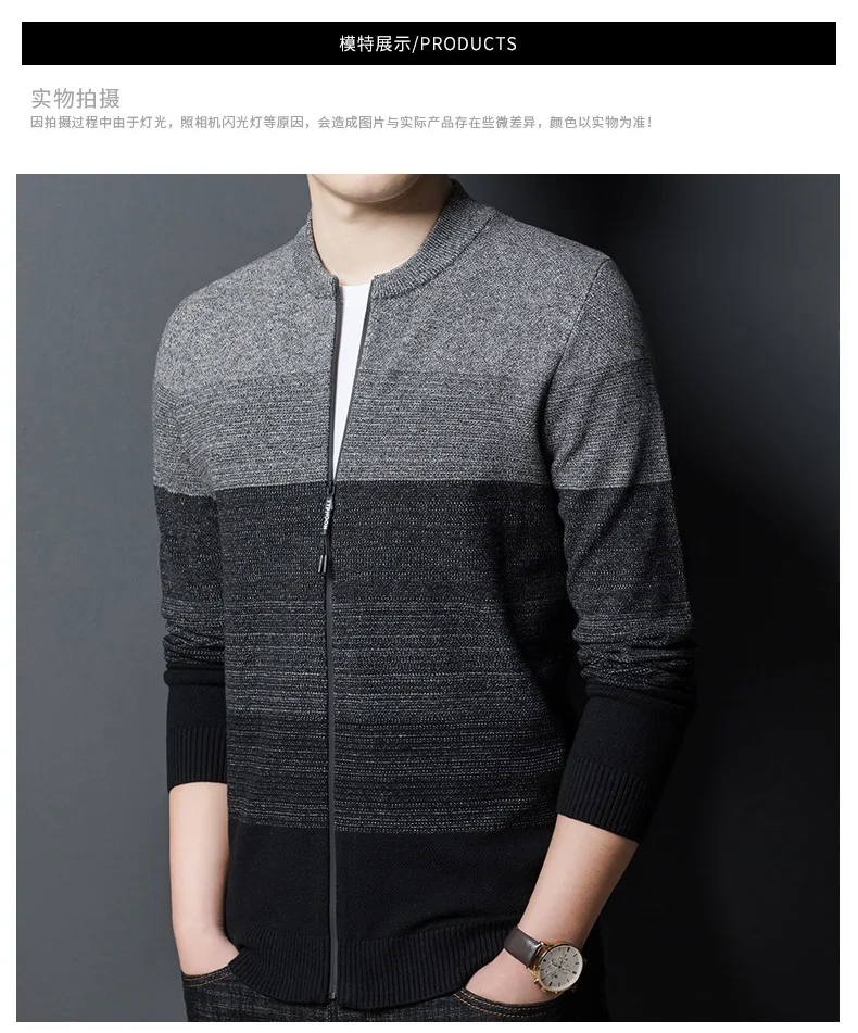 Высококачественный новый осенне-зимний брендовый модный вязаный кардиган на молнии с круглым вырезом, вязаный свитер в полоску, мужские повседневные пальто, куртка, Мужская одежда