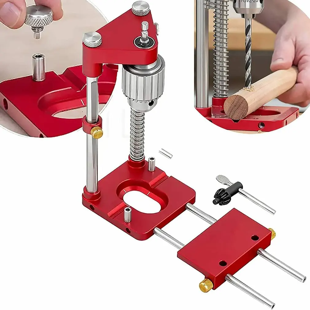 3.Complete kit:With key chuck, tapered depth control shaft and limit ring, spring return, reversible chuck bracket, built-in V-groove, alignment and adjustable fence, drilling locator guide rail with quick clamp, fast and firm Clamp.