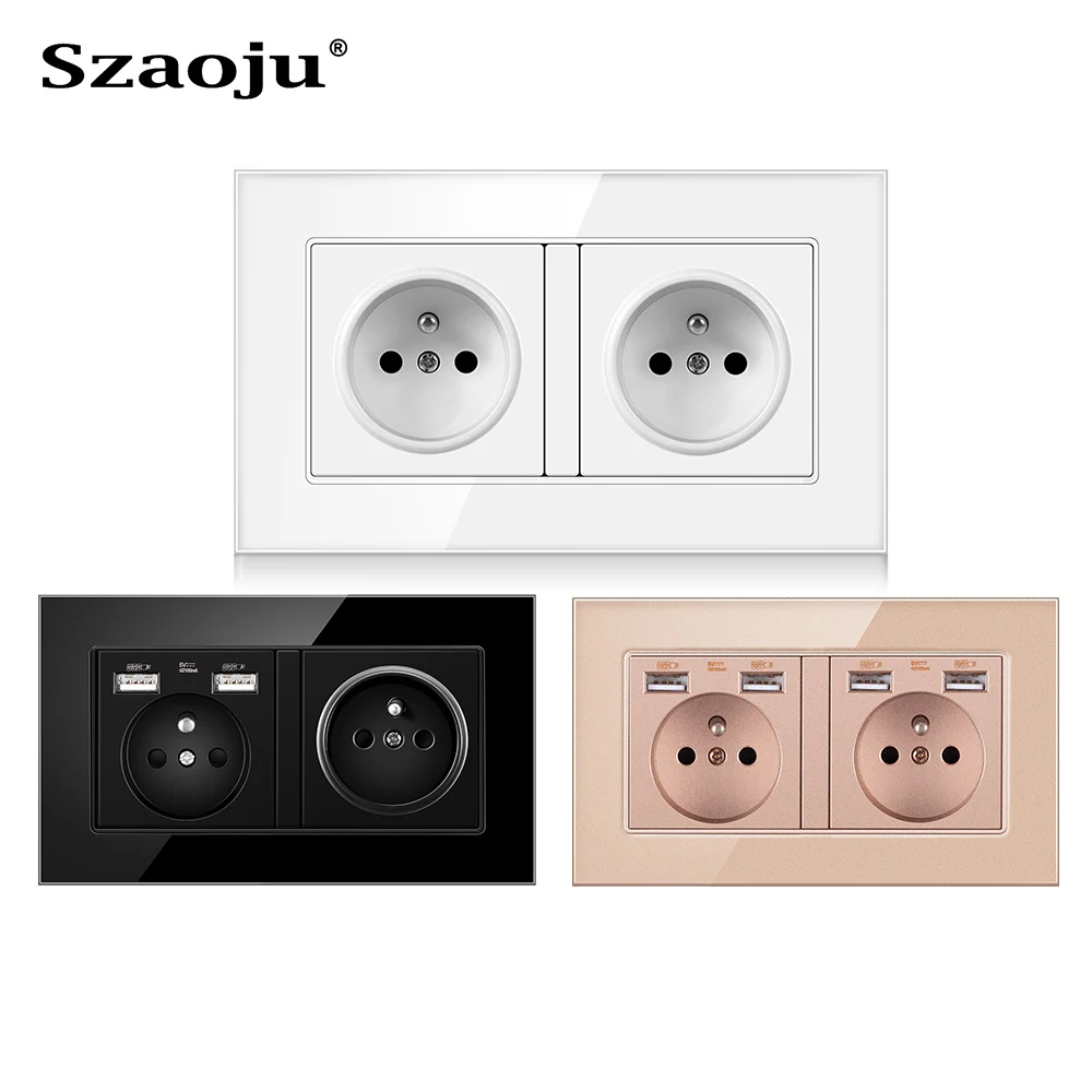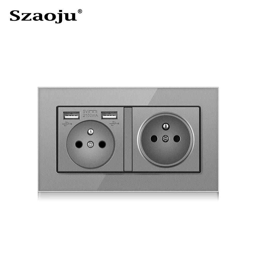 Французские настенные розетки, одиночные розетки 146*86 мм, Двойная Рама с USB-розетками, стеклянная панель, тройные розетки, защита для детей, 16 А