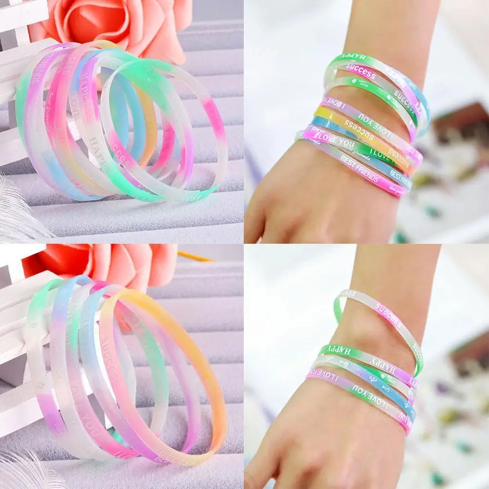 10 шт., детский светящийся Силиконовый браслет с буквами карамельны...
