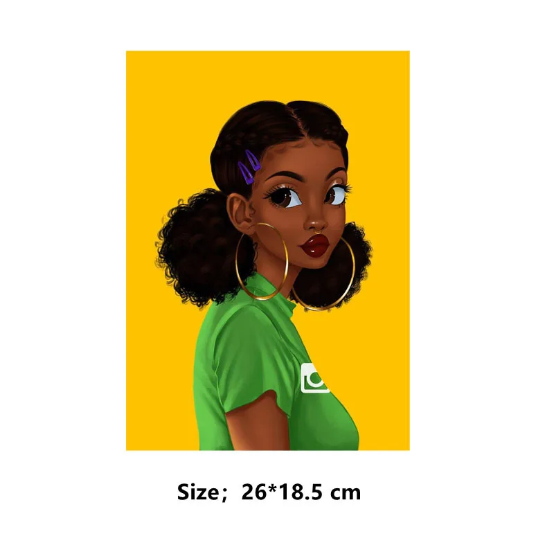 Нашивки для одежды с изображениями черных девушек в европейском стиле, самодельные нашивки, термонаклейки для женской футболки