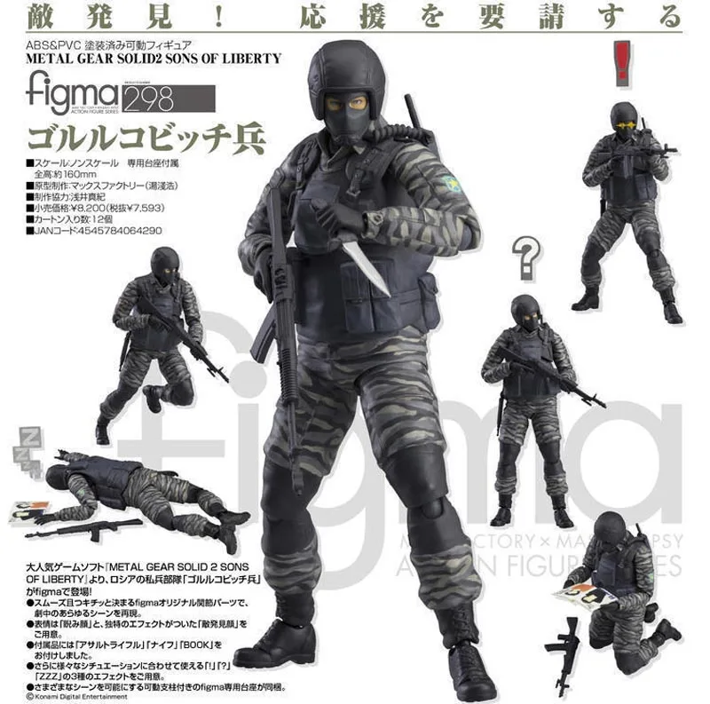 Фигурка солдатика Figma 243 Game Snake Gurlukovich Gear Solid 2: Sons Of Liberty Figma 298, металлическая Экипировка SOLID SONS OF LIBERTY Soldier