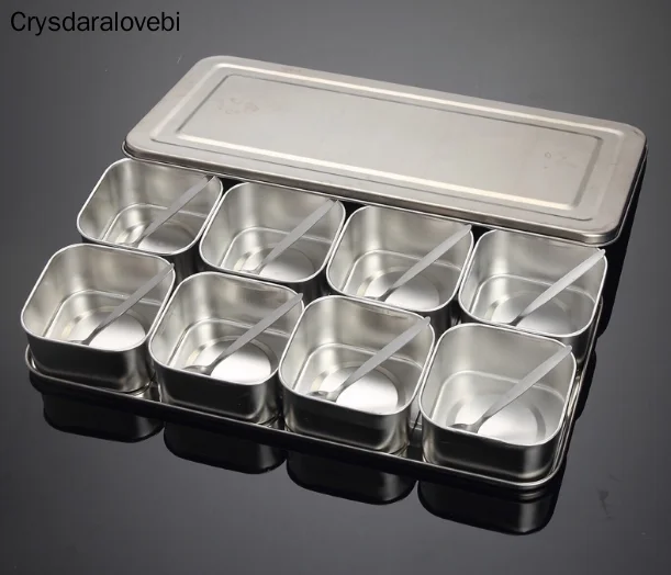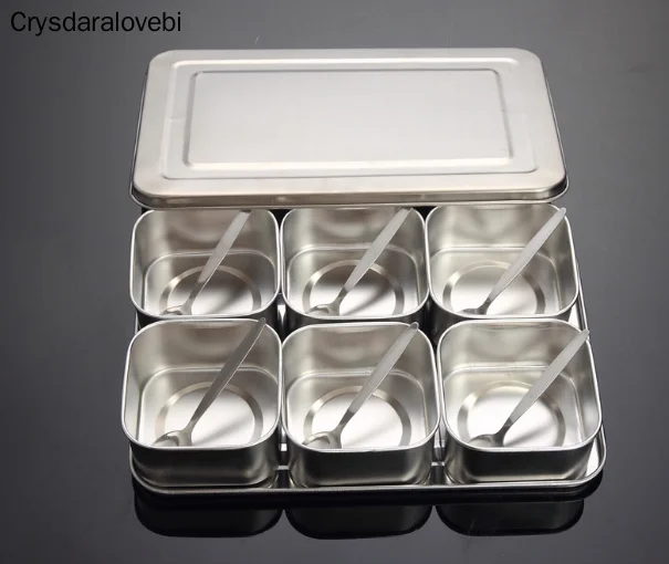 Японский набор коробок для приправ из нержавеющей стали, креативная банка для приправ, 6 ячеек, 8 ячеек на выбор, с крышкой, кухонный ящик для специй