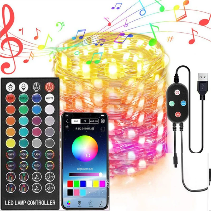 Рождественские украшения для дома, светодиодсветильник рлянда, водонепроницаемая светильник лянда, украшение для рождественской елки, цветная RGB-подсветка, Bluetooth, рождественский подарок