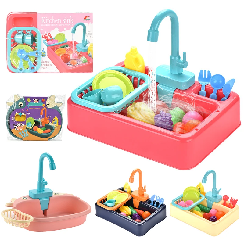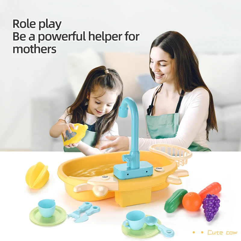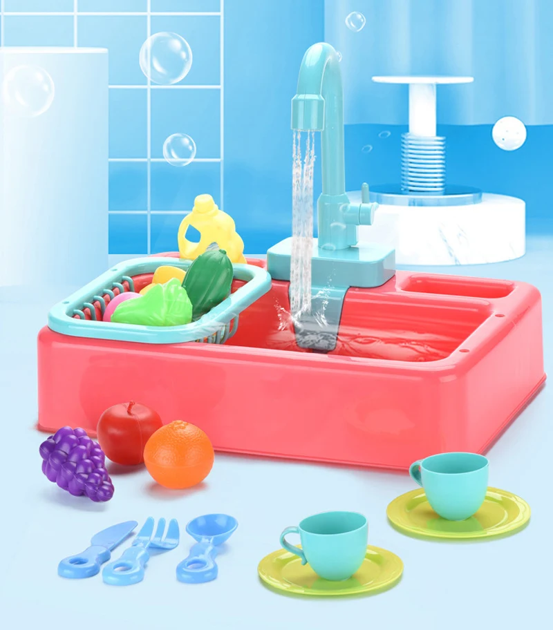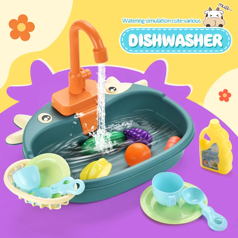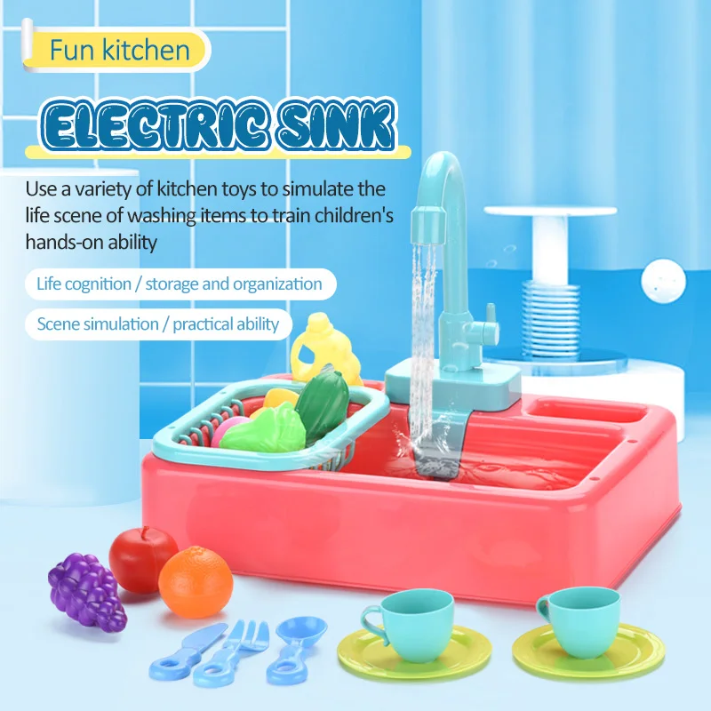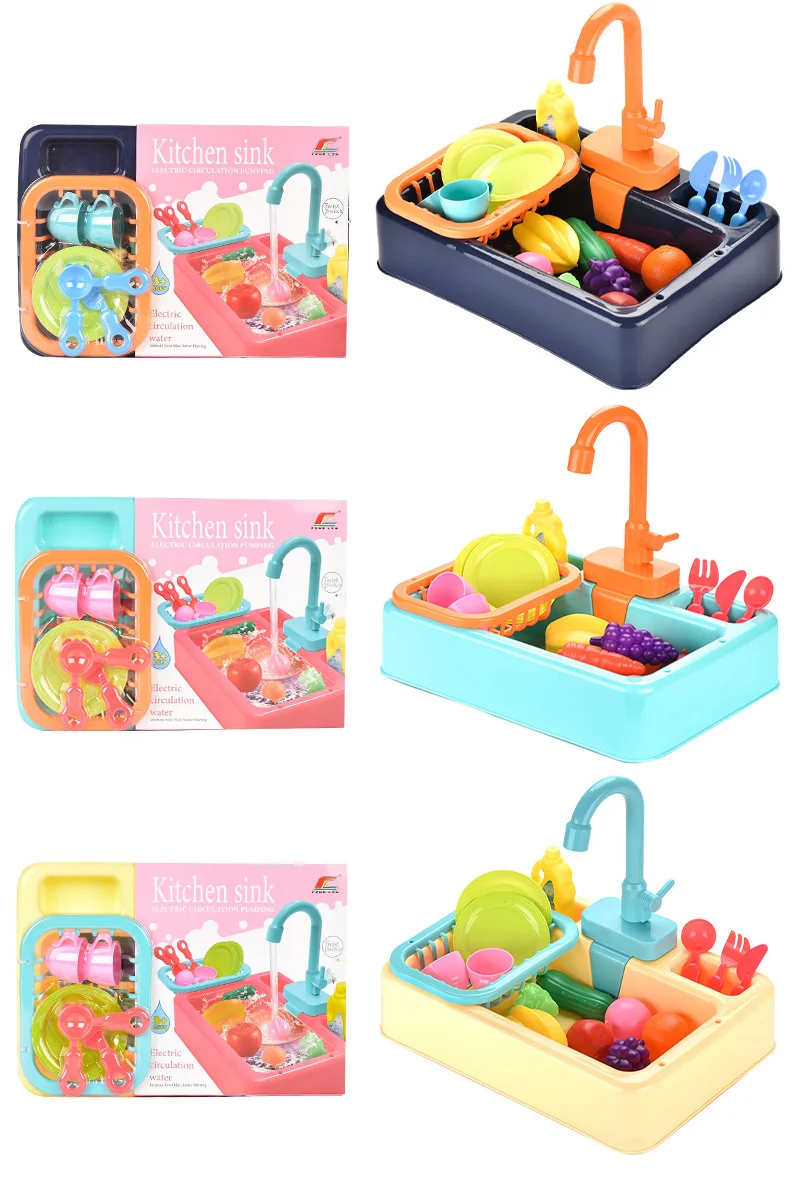 Детская имитация кухни Электрическая Мойка дом для мытья еды игровой стол фрукты игрушки для детей образовательные подарки