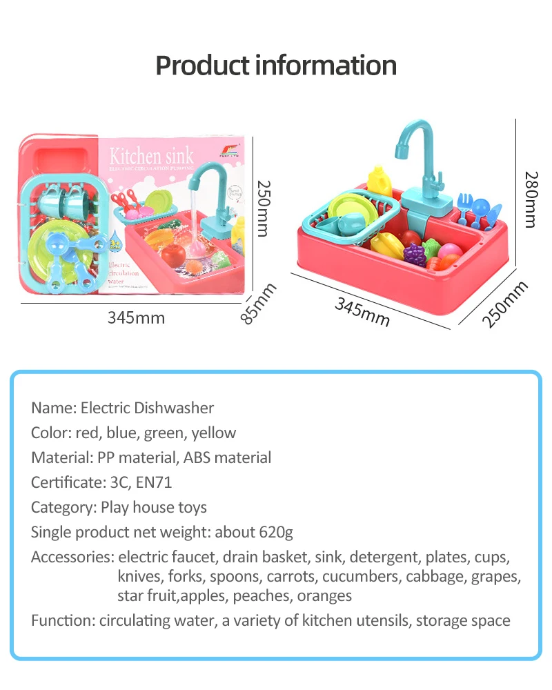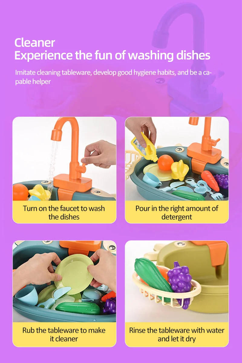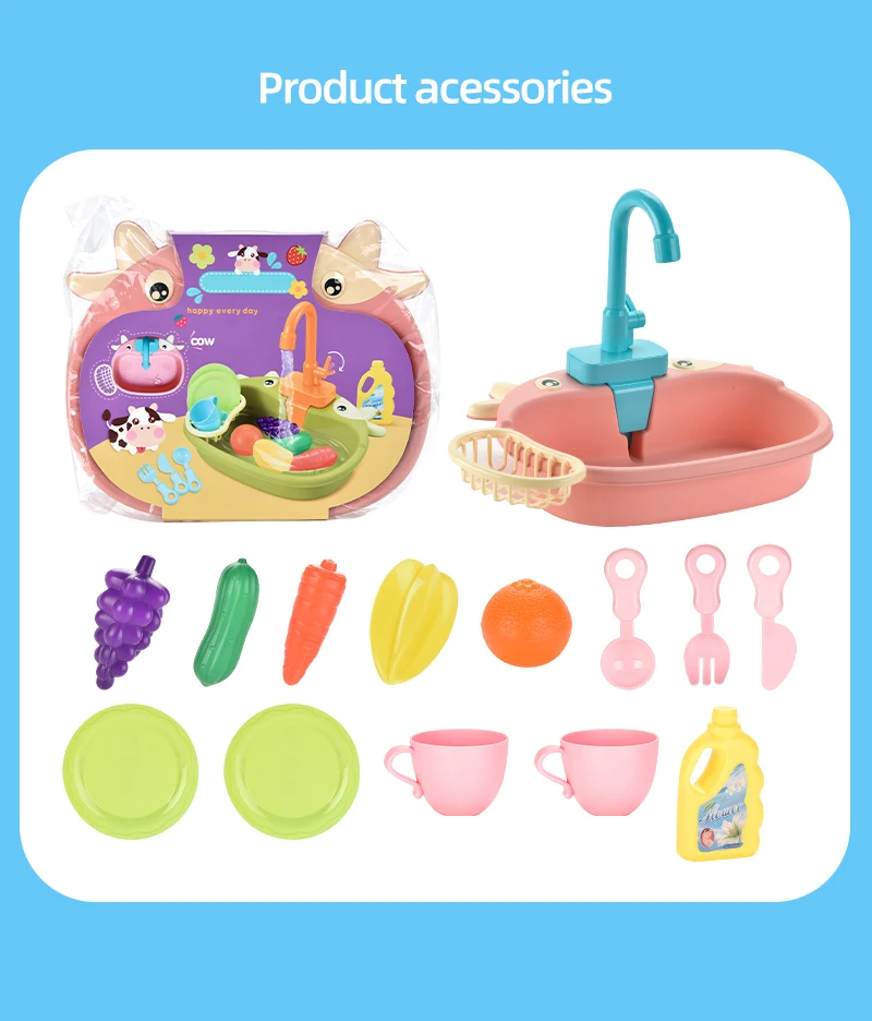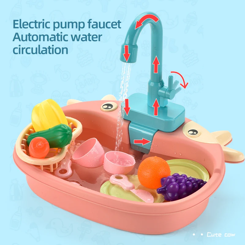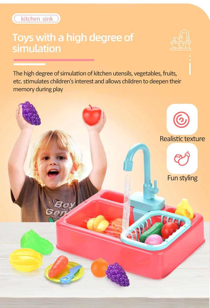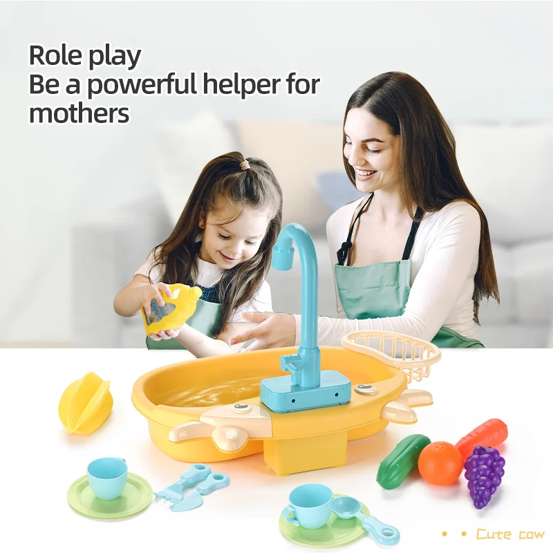 Детская имитация кухни Электрическая Мойка дом для мытья еды игровой стол фрукты игрушки для детей образовательные подарки
