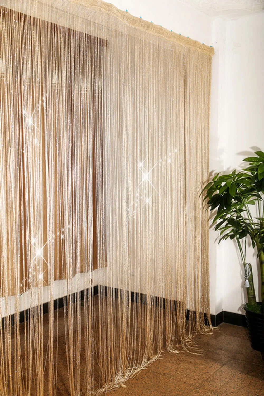 Блестящая струнная дверь занавески-разделители комнаты, расшитые бисером, оконная панель с бахромой