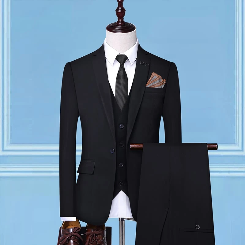 (Пиджак + брюки + жилет), мужские костюмы из 3 предметов, черный ко...